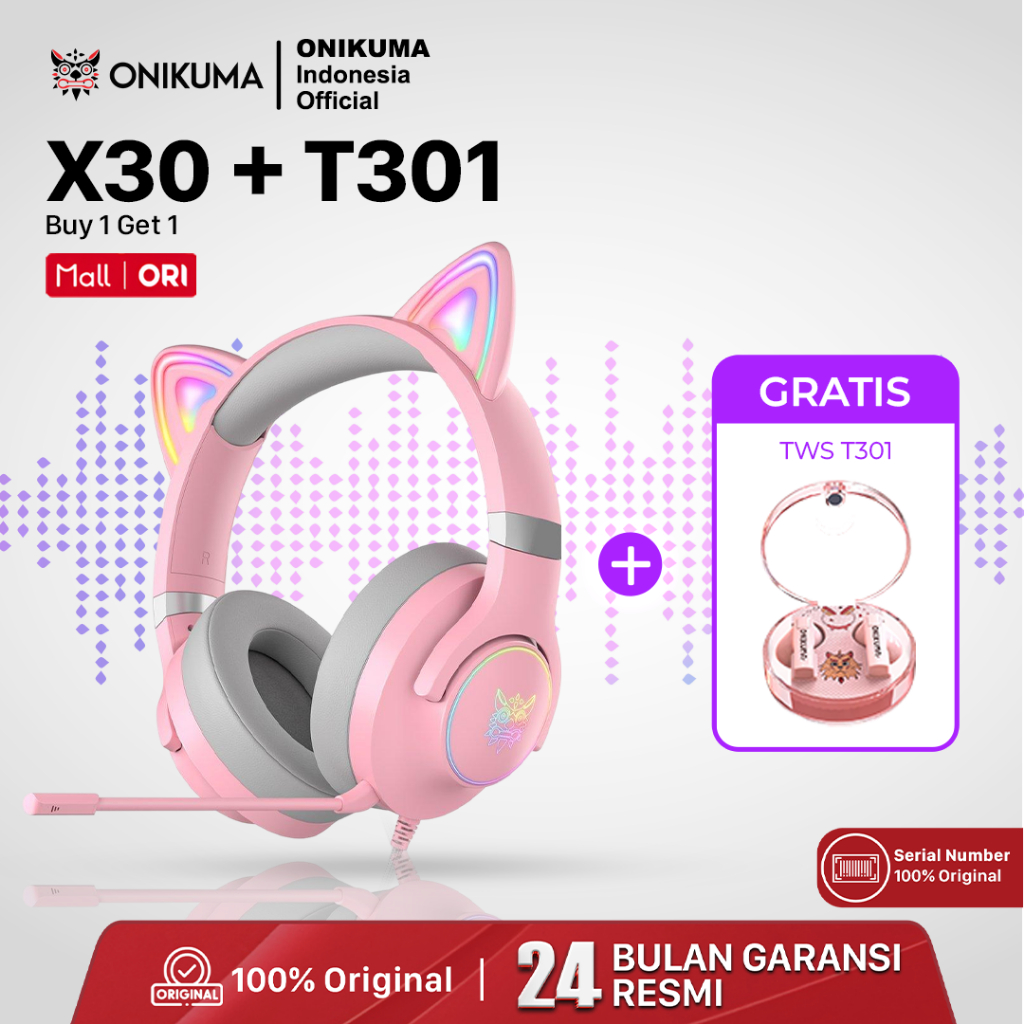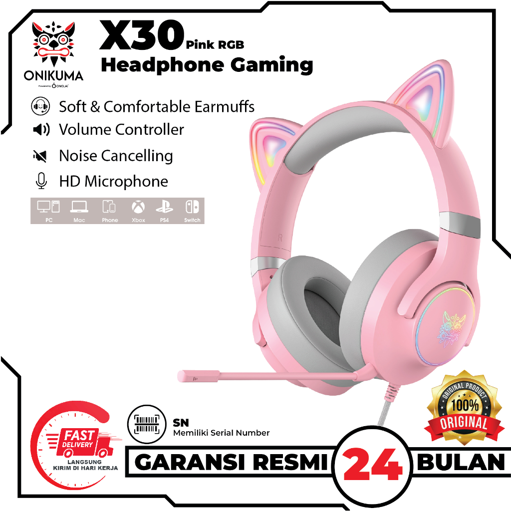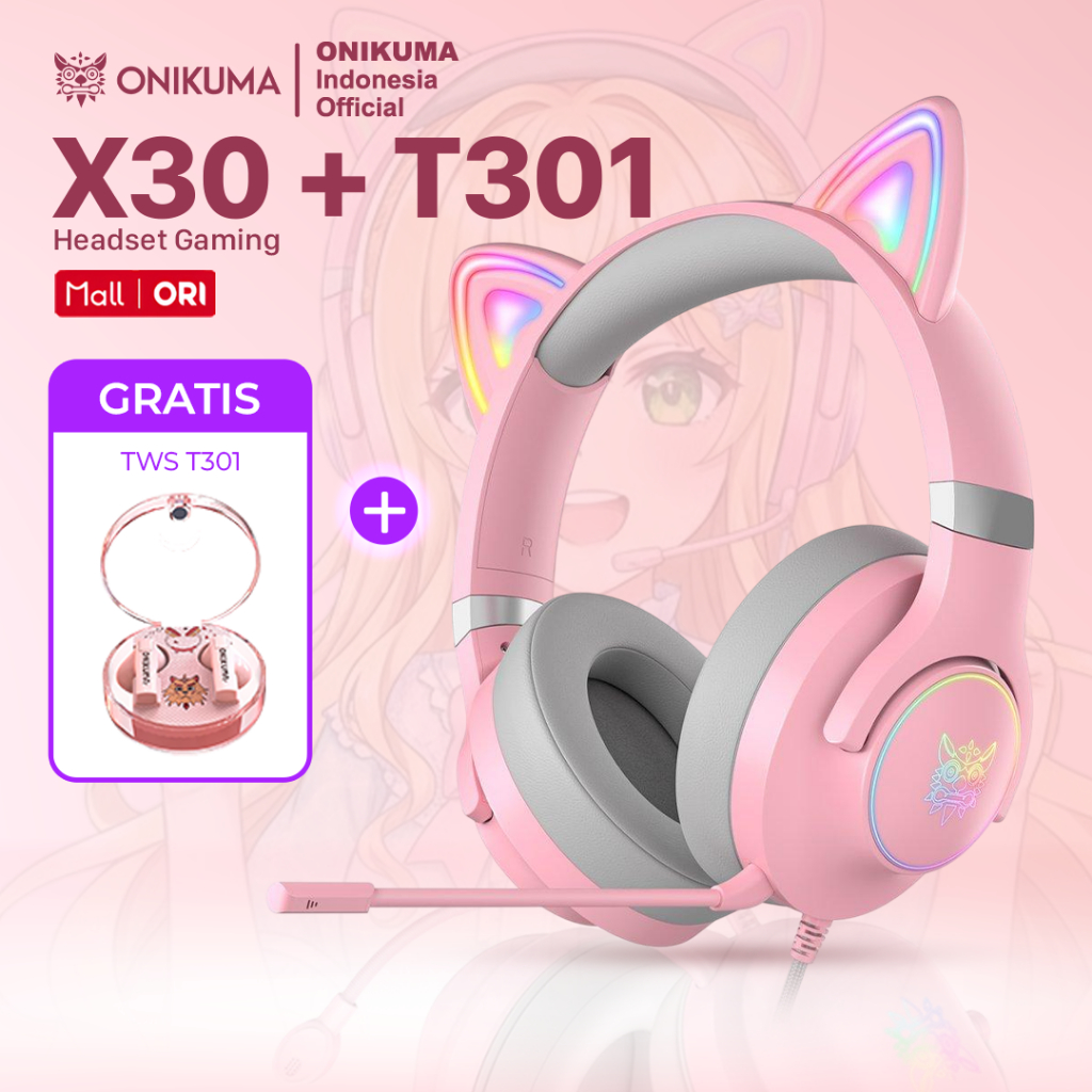ONIKUMA X30 Headphone Gaming Wanita NEW FREE PRODUK MINIMAL PEMBELIAN 300 RIBU} - Pink RGB Headset Gaming Model Cat Ear