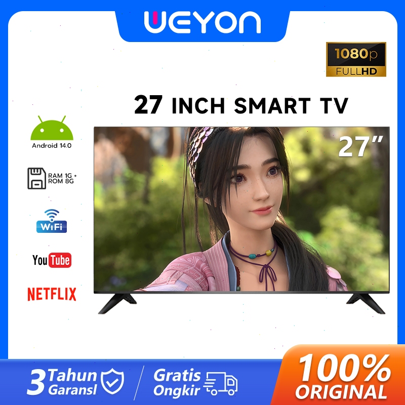 WEYON 27" Flat Screen Smart TV - Full HD 1080P, Android Smart TV with WiFi/HDMI, High Definition Home Television