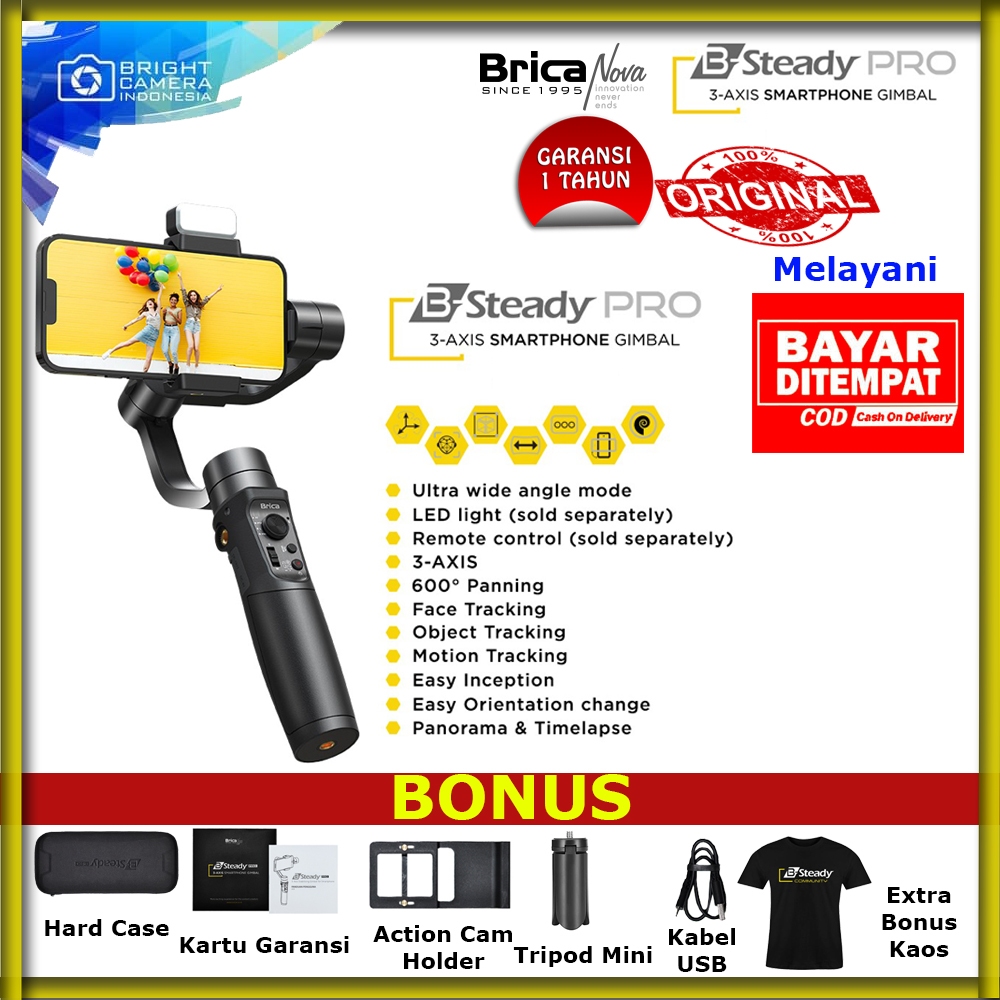 Brica Bsteady Pro - 3 Axis Gimbal Smartphone - Free Kaos Exclusive - Hitam - Garansi Resmi