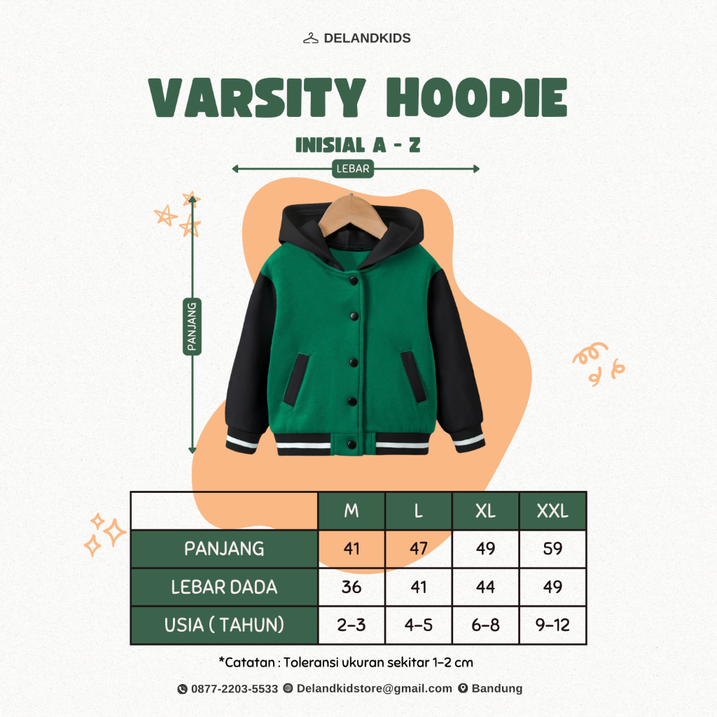 Delandkids - Varsity Hoodie Baseball - Jaket Anak Usia 2 - 12 Tahun - Premium Quality Dtf X Flocking Sablon Unisex Laki