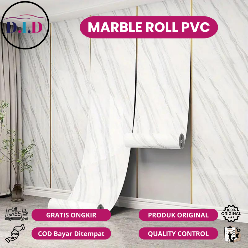 DID - (PAKET 5 ROLL) Wallpaper Foam PVC Marmer 1 Roll 60 CM X 2.8 M Marble Foam Dinding Motif Marble Stiker