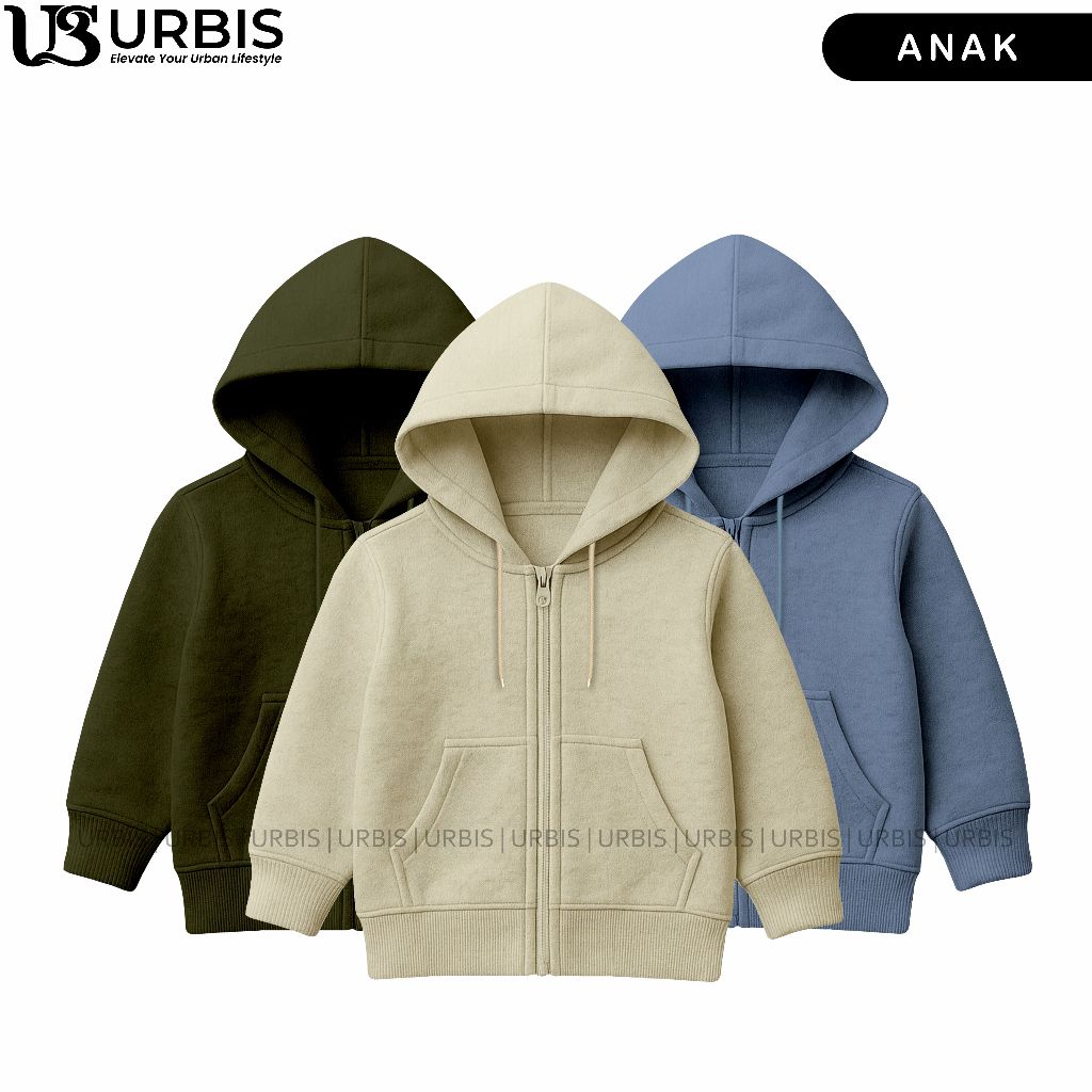 Urbis Jaket Zipper Polos Anak Laki-Laki Perempuan Usia 3-13 Tahun Fleece Tebal Premium