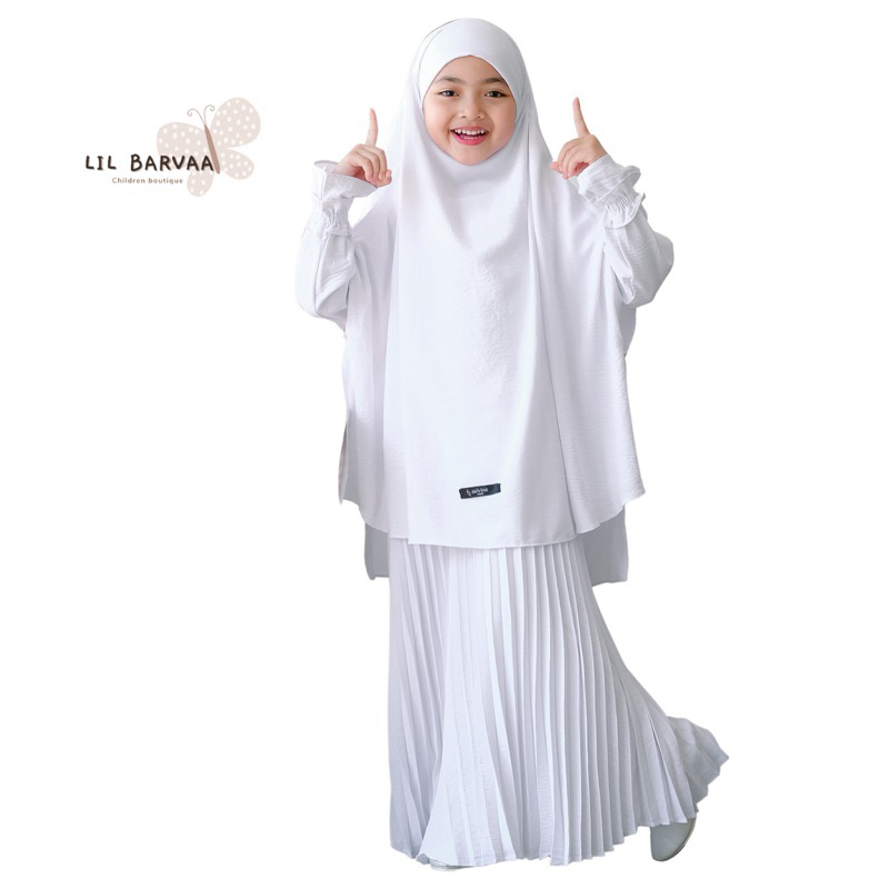 Lil Barvaa - Calista Plisket Putih Set French Khimmar Gamis Anak Free Cadar