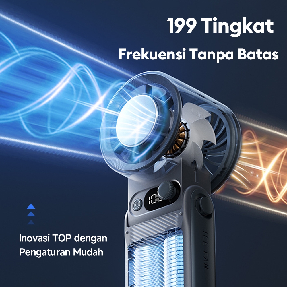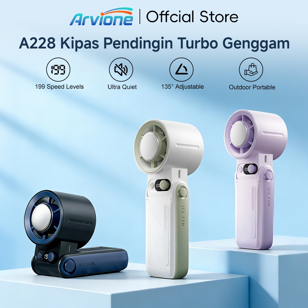 ARVIONE Kipas Angin Portable Mini Lipat A228 199 Kecepatan Angin Turbo Fan Layar Digital Kipas Tangan Kencang untuk Olahraga & Pendinginan Cepat Mini Fan