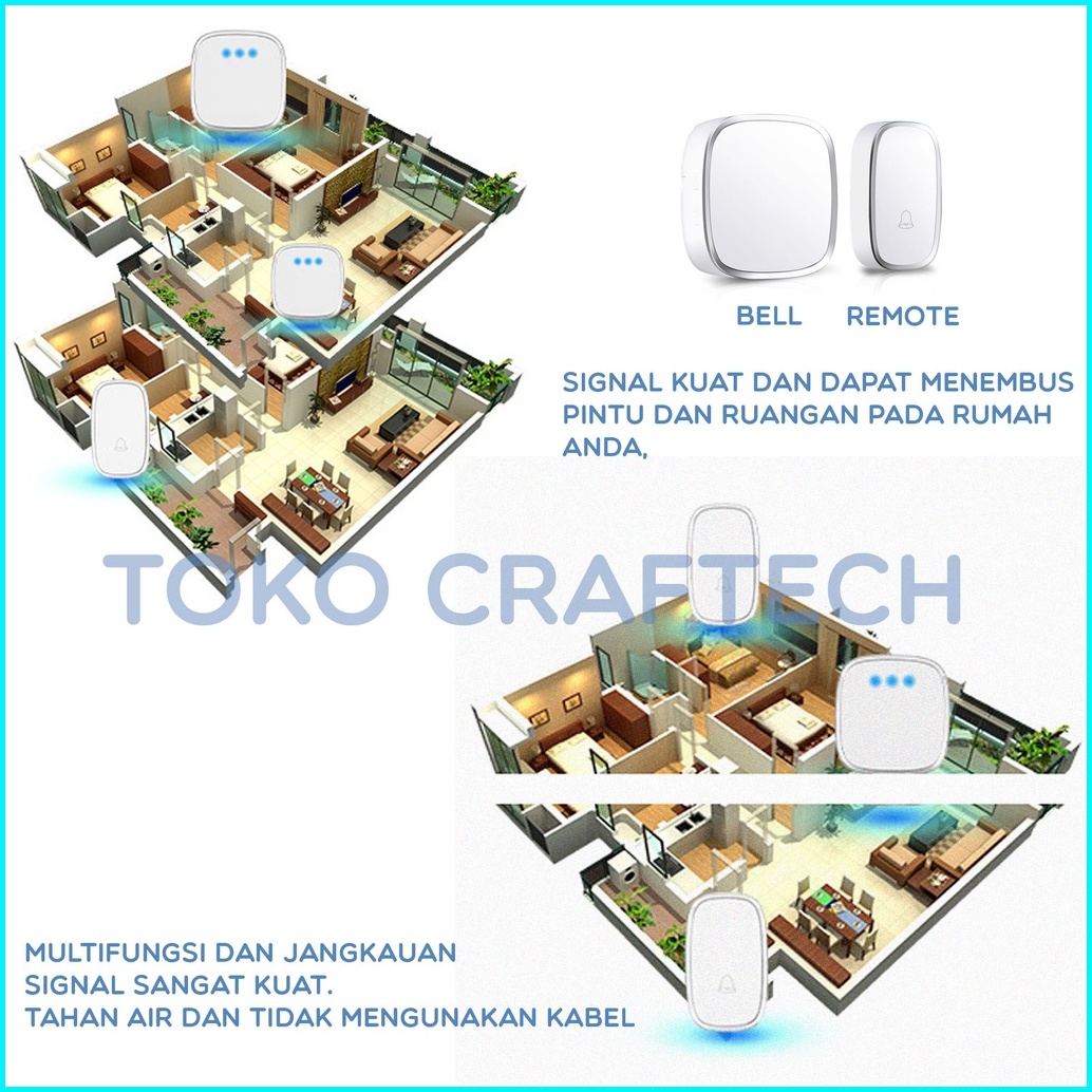 Bel Rumah 300m Ip44 Wireless Anti Air Bisa Pilih Musik Waterproof Door Bell Pintu