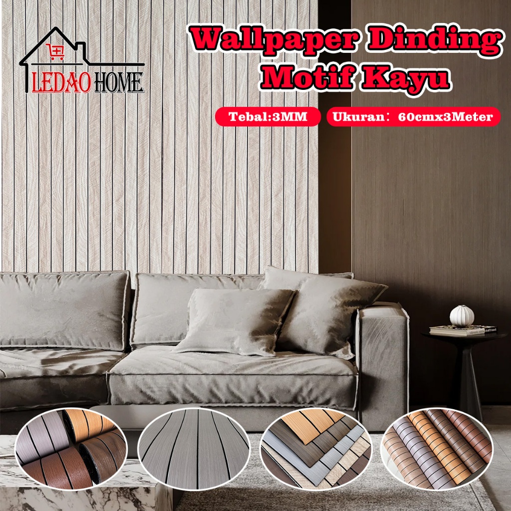 LEDAOHOME Wallpaper Dinding Elegan Motif Kayu - Stiker Dinding Anti Air Ukuran 60x300cm | tebal 3mm