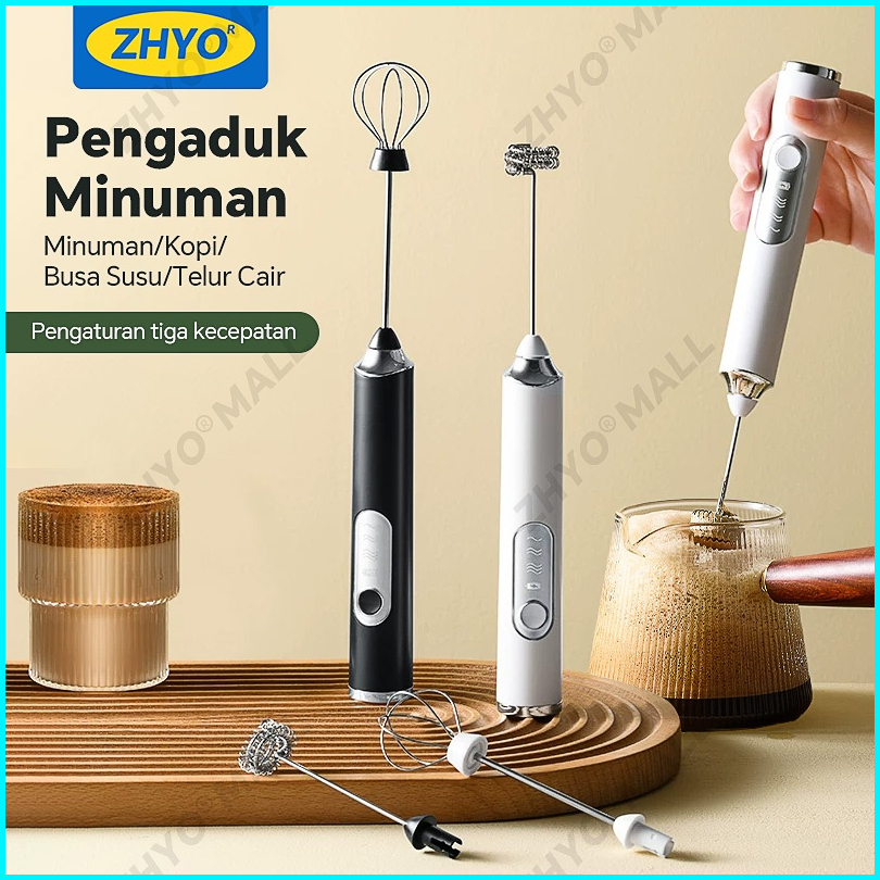 Zhyo Mixer Listrik Mini Pembuih Susu Pengaduk Minuman Portabel Pembuih Kopi Pengocok Telur- Tiga Kecepatan Pengisian Day