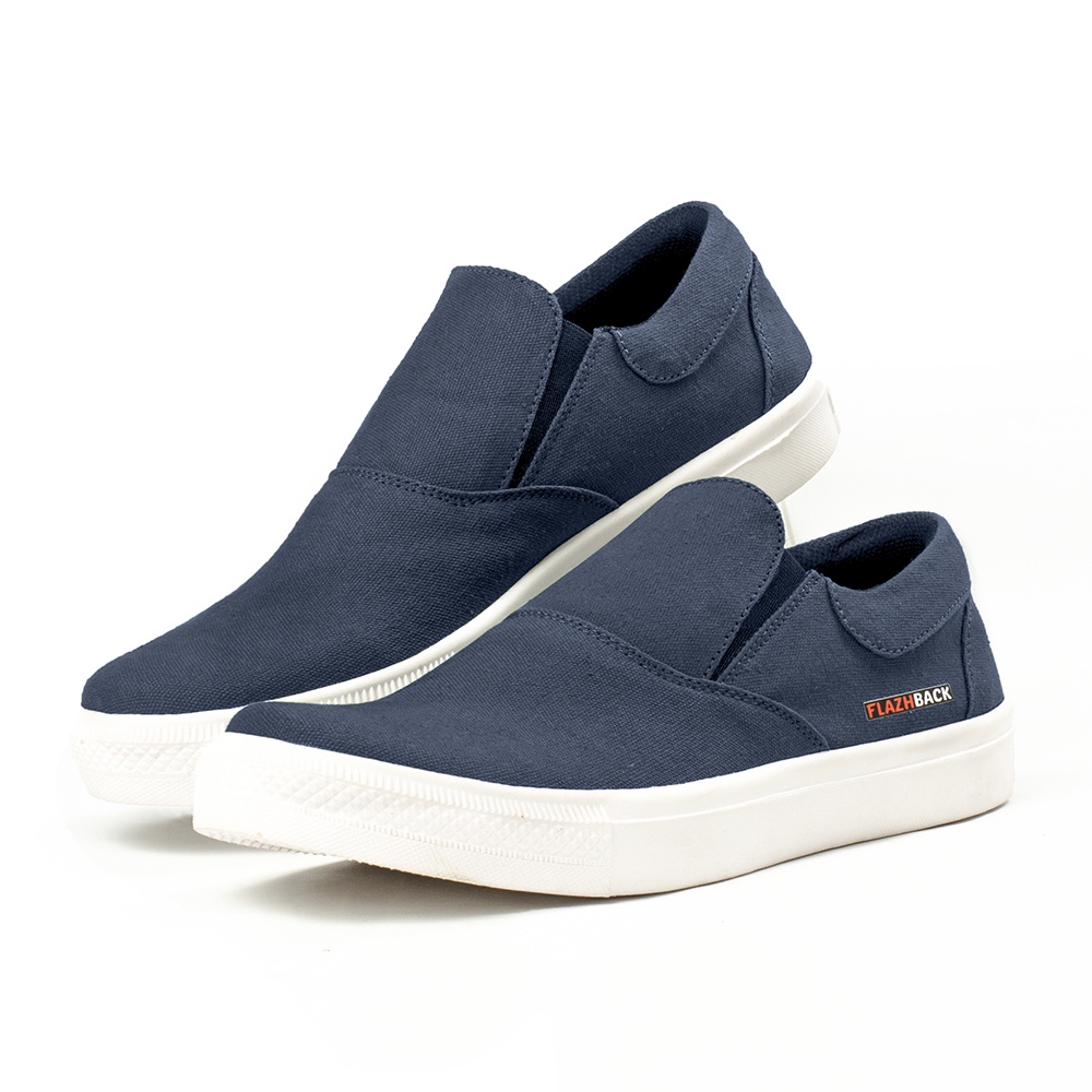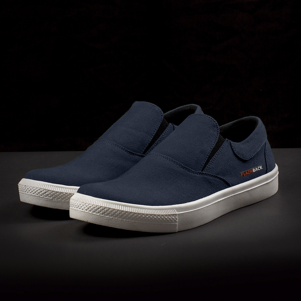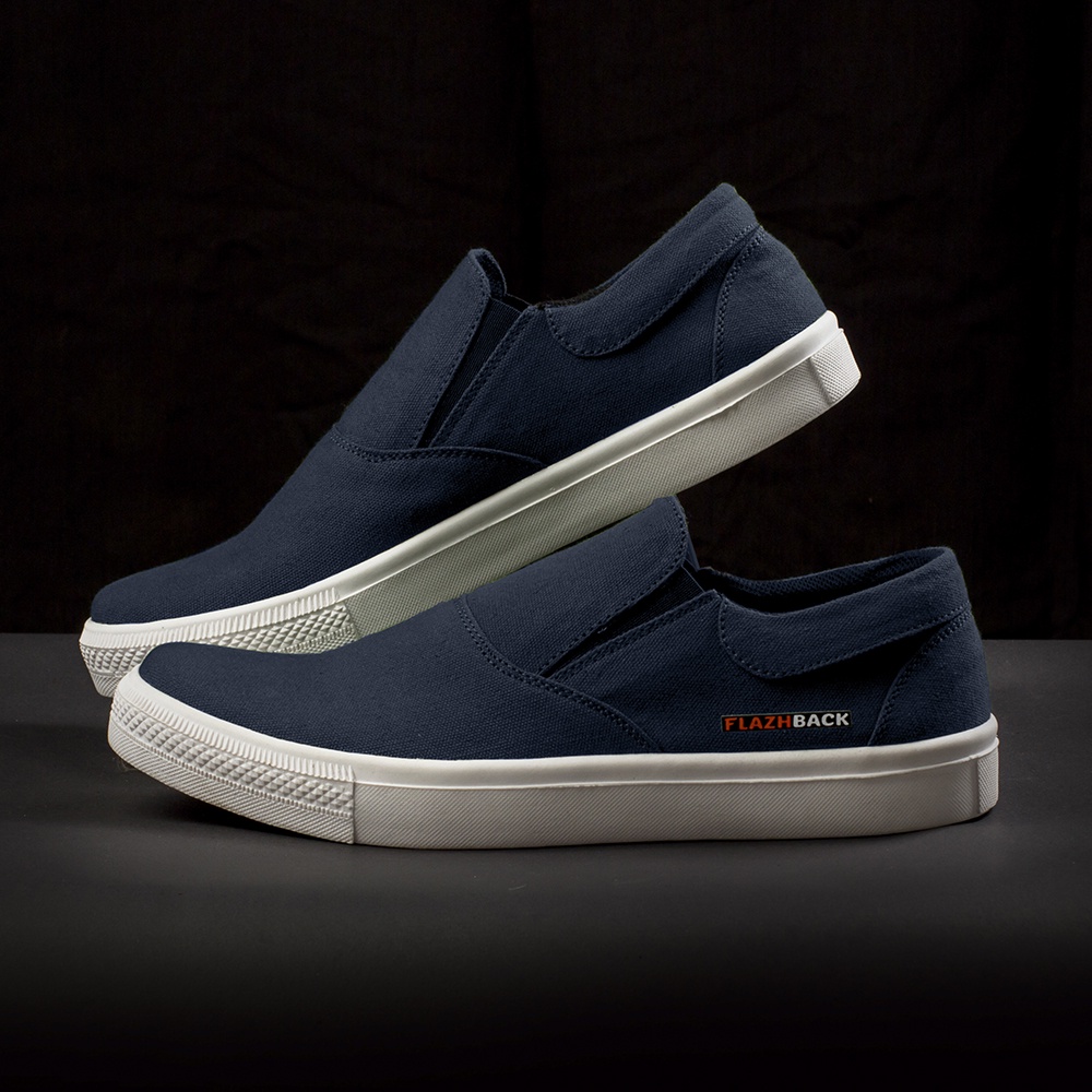 Owl Navy |Manneedme X Flazhback| Sepatu Sneakers Pria Casual Slip On Kanvas Original