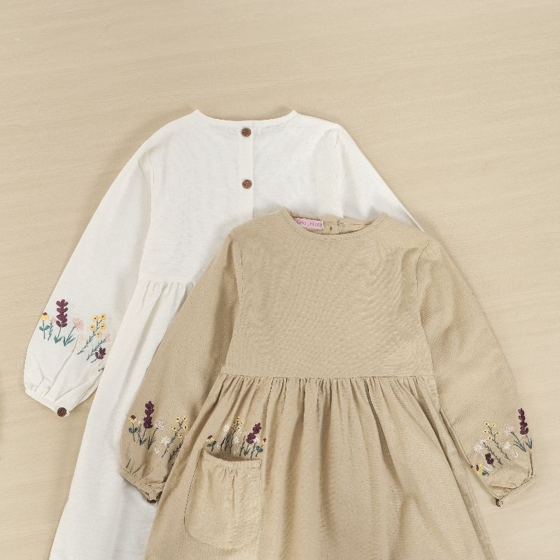 Kiddi Hijab Kikan Dress Gamis Mu Anak Tanggung Remaja Perempuan Bahan linen Bordir Manual Baju Lebaran