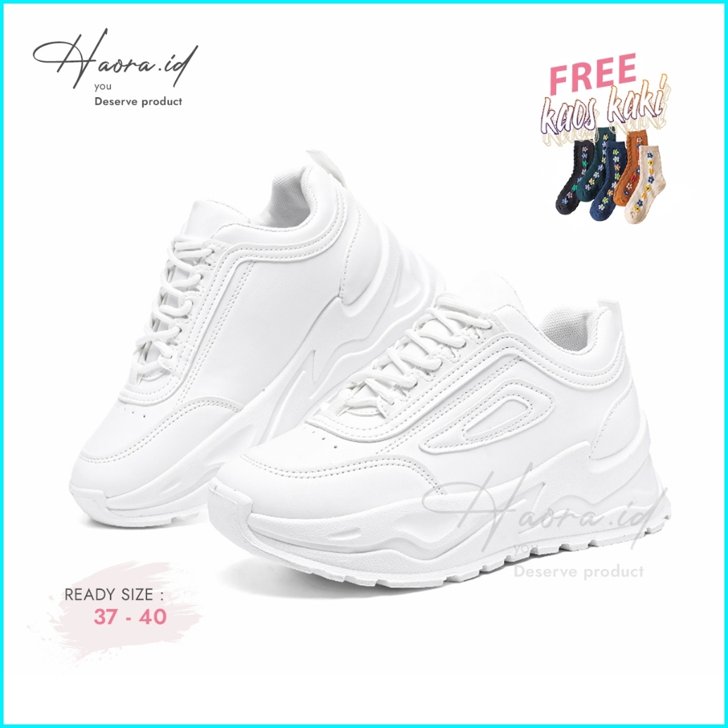 Sepatu Sneakers Wanita Hitam Putih Kasual Sport Shoes White Black - Hr08