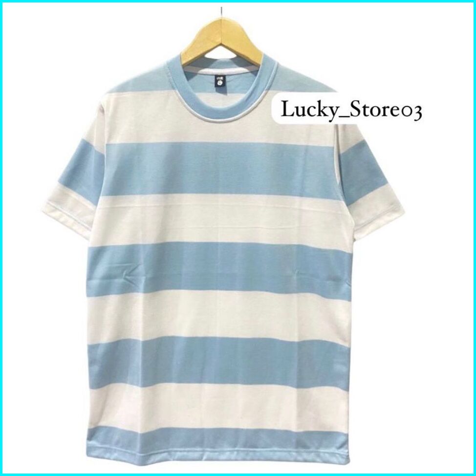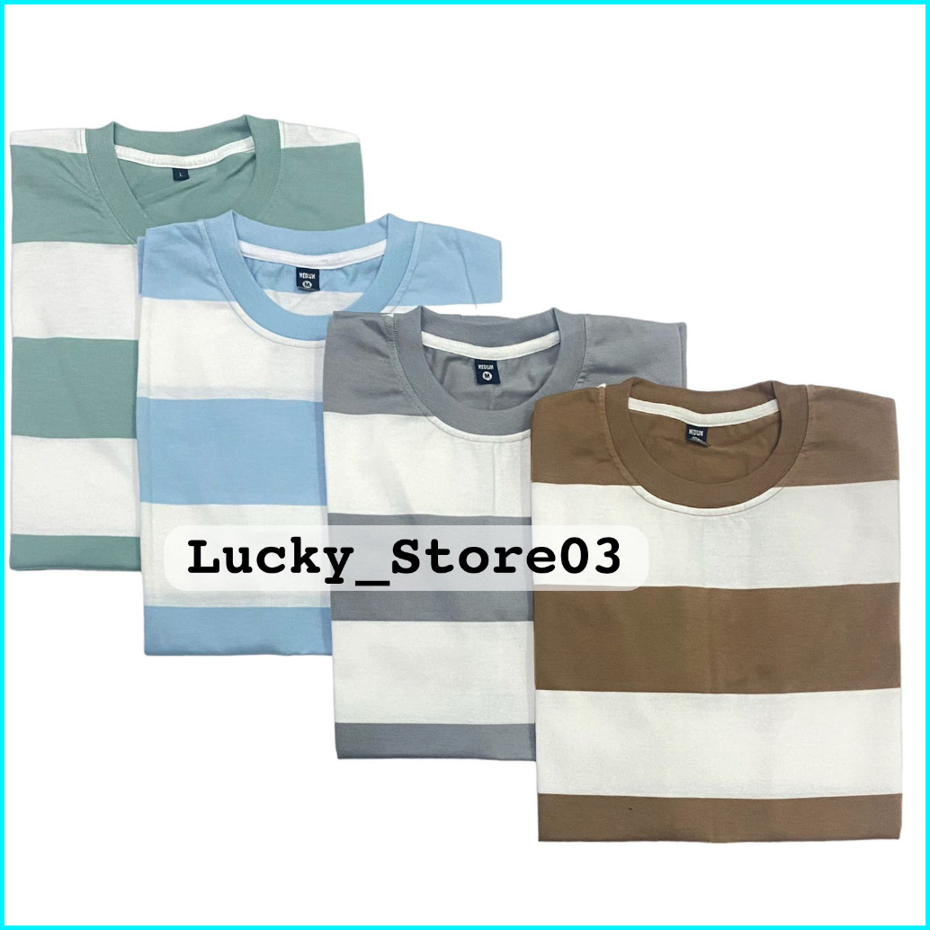 Terlaris Promo 12.12 Kaos Stripe Putih Series Cotton 24s Kaos Stripe Tebal Premium