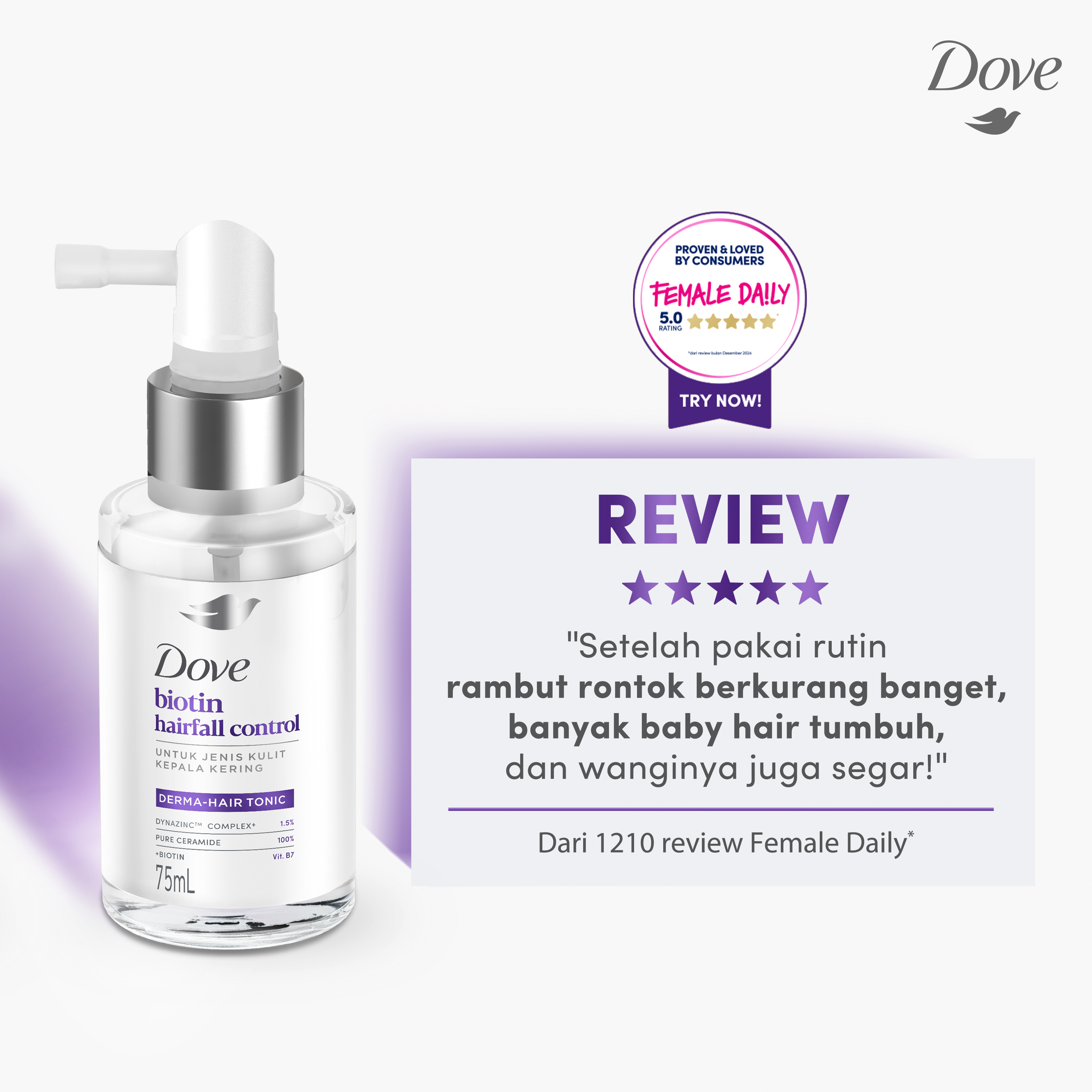 Dove Hair Tonic Biotin Hairfall Control 75mL | Tonic Perawatan Rambut Rontok Untuk Jenis Kulit kepala Kering dan Sehat | Tonic Hair Booster