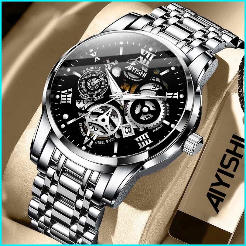 New Sale Jam Tangan Pria Original Display Kuarsa Cahaya Malam Anti Air Tali Stainless Steel Santai Mode Jam Tangan Cowok