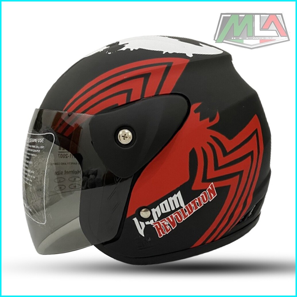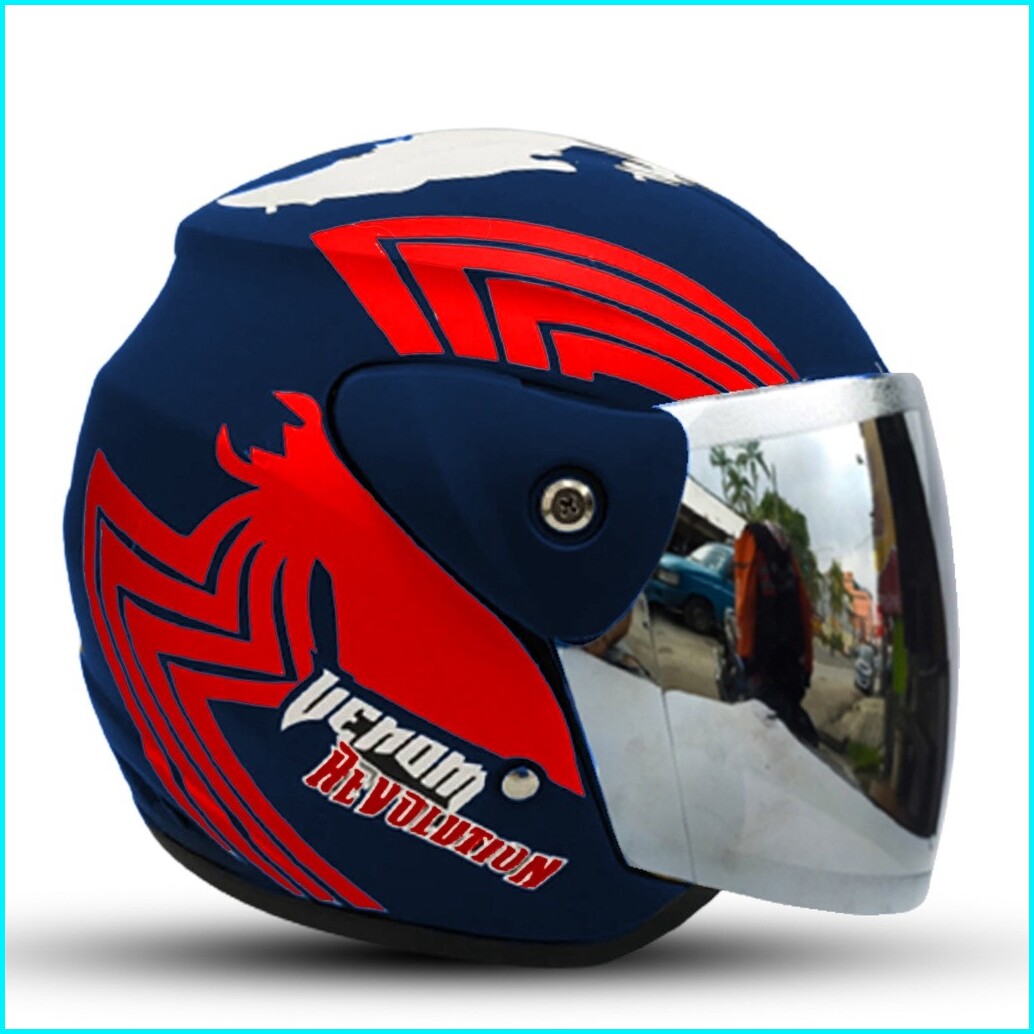 Helm Half Face Evo Evolution Venom Kaca Silver Pelangi - Helm Premium Untuk Pria Dan Wanita Dewasa Sni