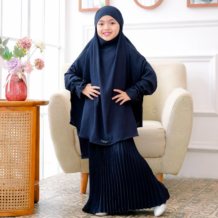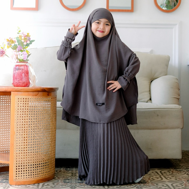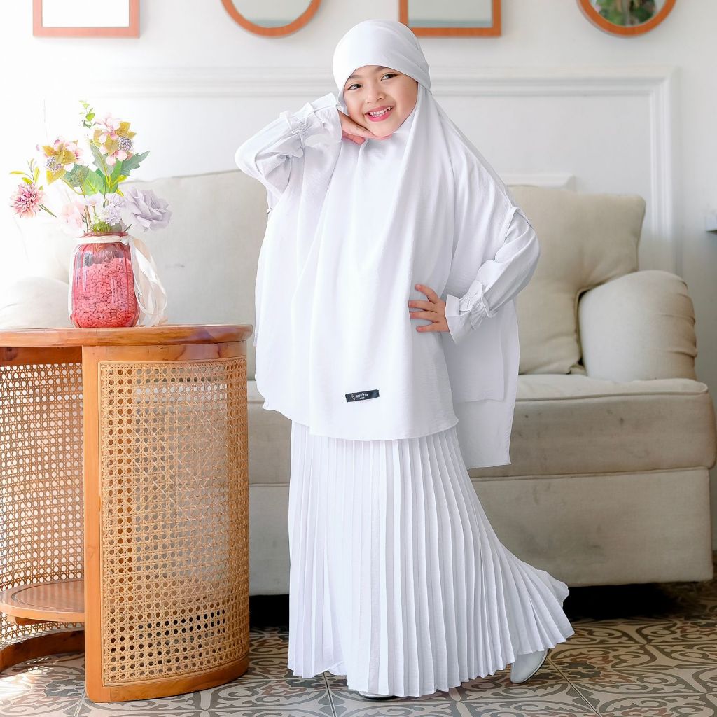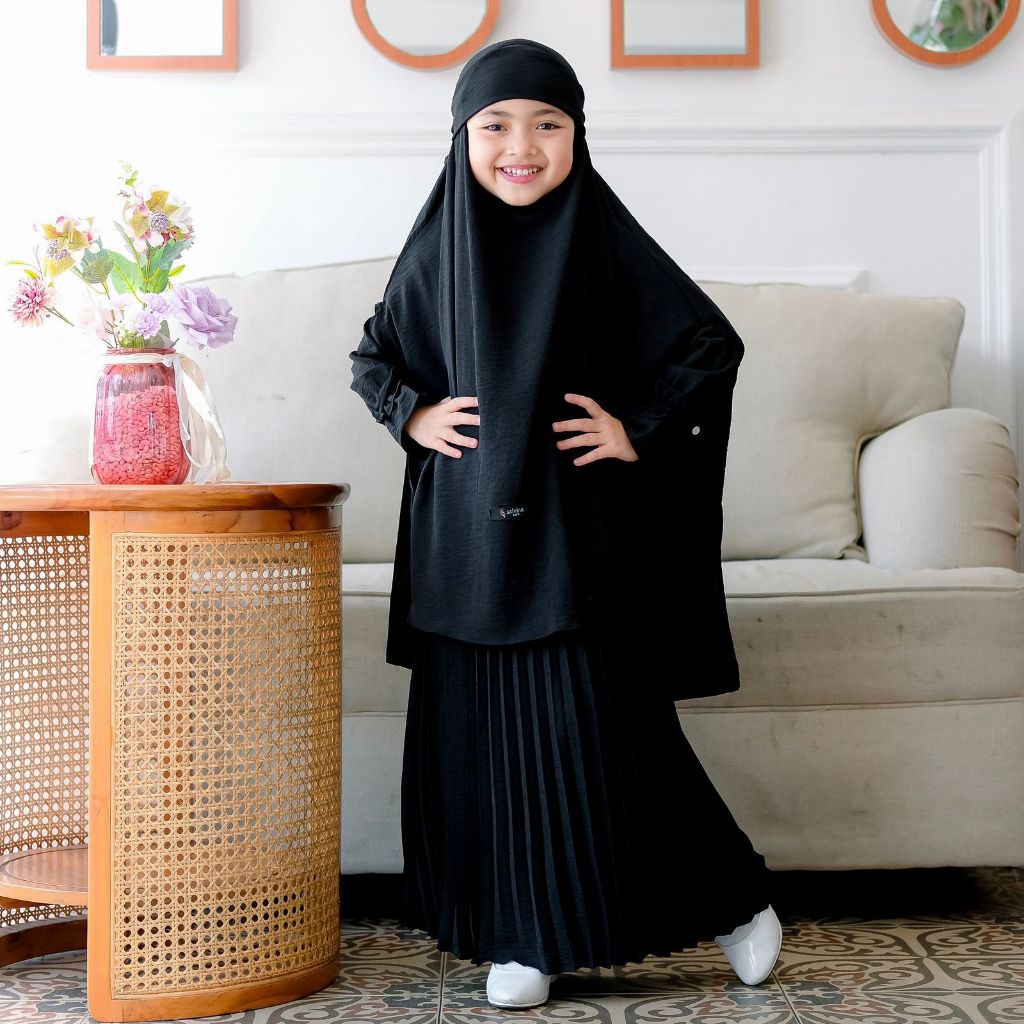 Salvina Kids - Gamis Anak Plisket French Khimar Free Cadar Usia 4 Sampai 15 Tahun Malika Set