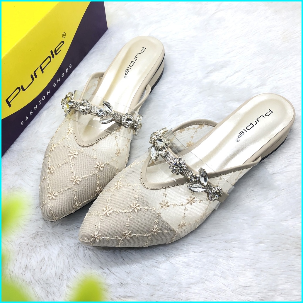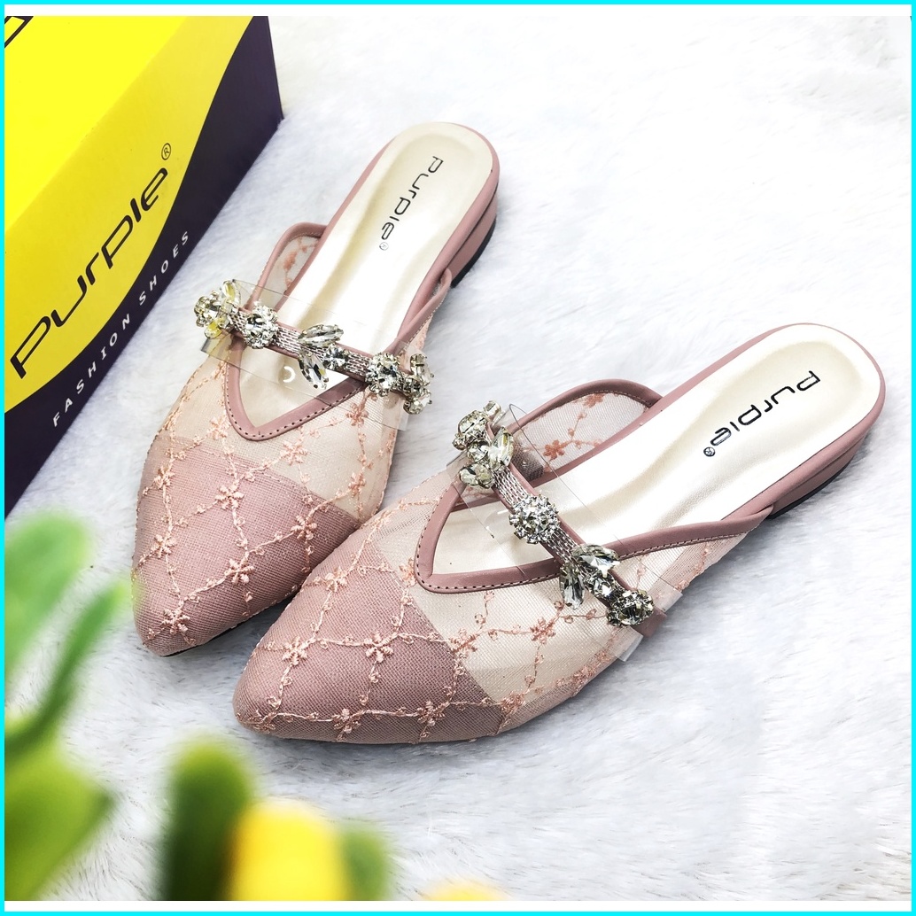 Sandal Brukat Flat Shoes Wedding Wanita Valerina Series Purple Original Big Size Lokal