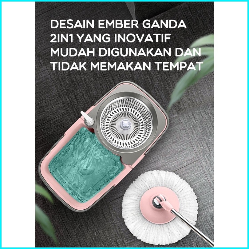Bct706 - Bonbox Alat Pel Lantai 2 In 1 Ember Terpisah Dapat 2 Kain Pel Lantai Ember Terpisah Mop Kain Fiber Dengan Spin