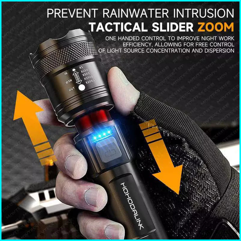 Hohodalink Senter Led Super Terang Zoom Usb Rechargeable 10000 Lumens Jarak Jauh Ringan Tahan Air Ipx4 Senter