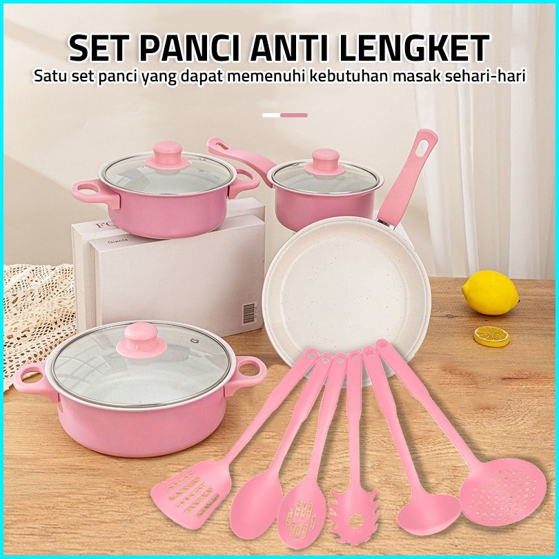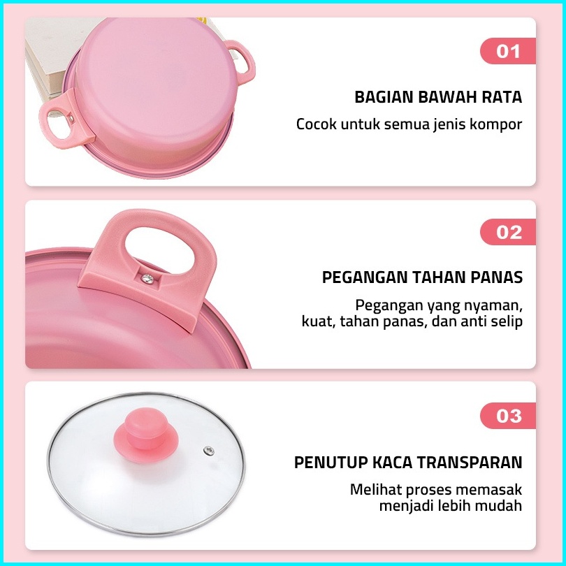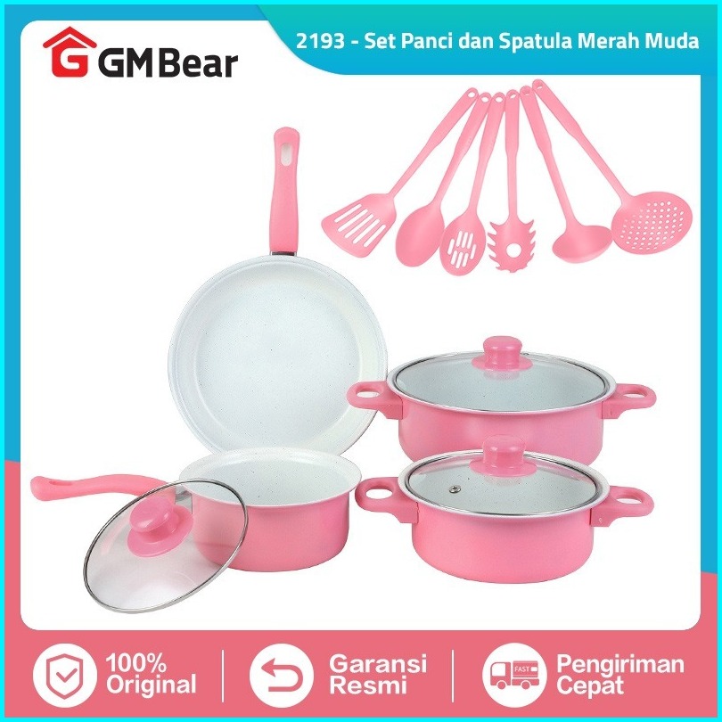 Gm Bear Set Panci Dan Spatula Merah Muda 2193 - Wajan Penggorengan Spatula Set Frypan Saucepan