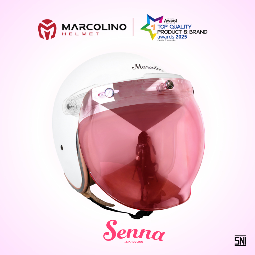 Helm Wanita Bogo SNI [ Marcolino Senna White With Visor ] Marcolino Helmet Senna Edition SNI ( Helm Bogo cewe cowo pria wanita aesthetic Marcolino Senna Edition SNI Motorcycle)