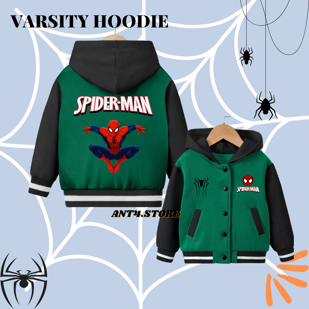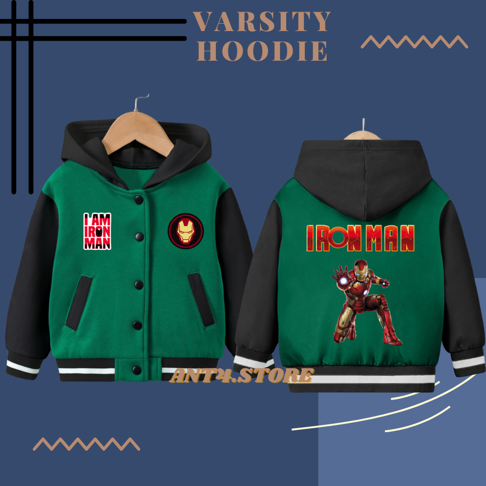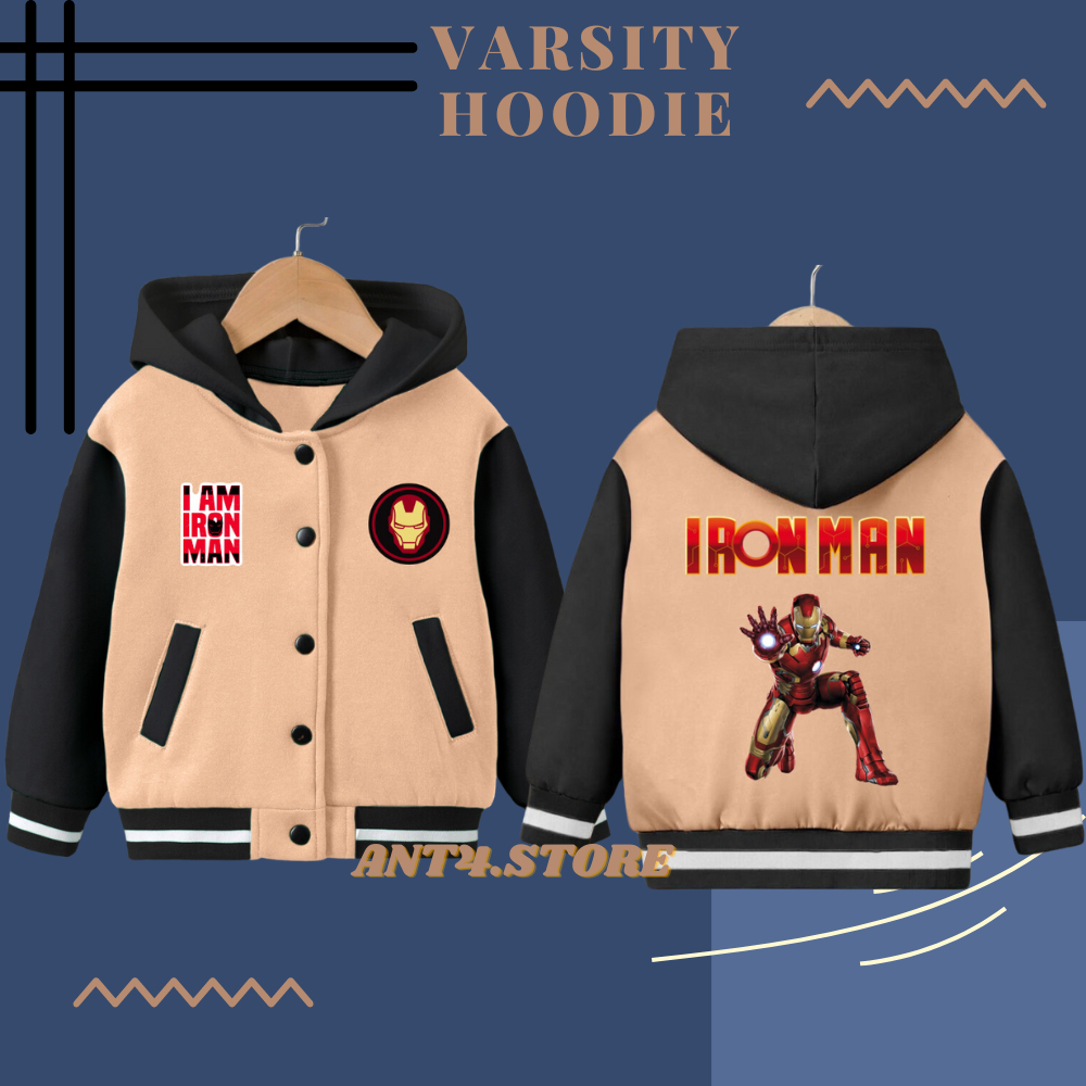 Jaket Anak Laki Laki Varsity Hoodie Ironman & Spiderman Usia 2-12 Tahun