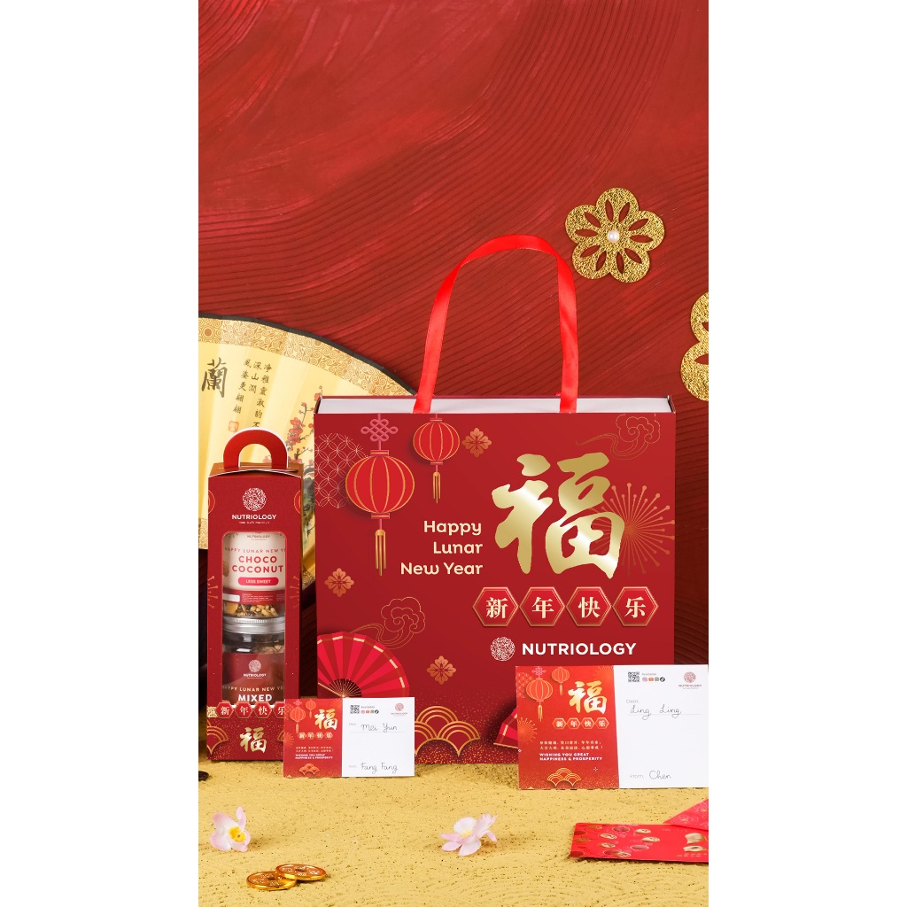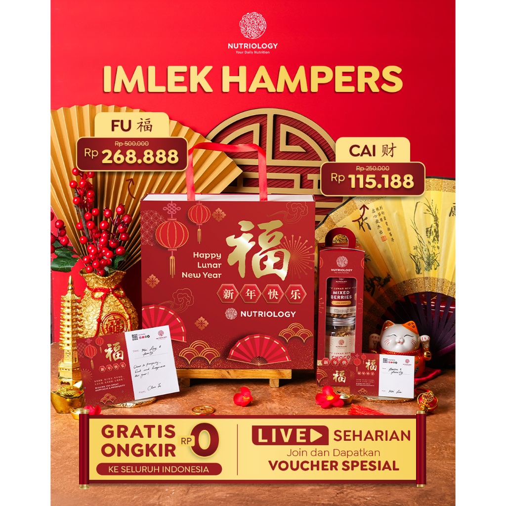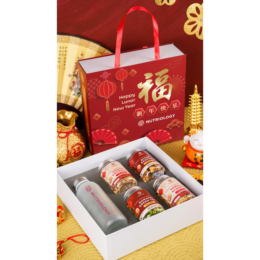 Hampers Imlek Granola Nutriology FU Bingkisan Parsel Gift Parcel Hadiah Cantik Hamper premium Chinese New Year Tahun bar