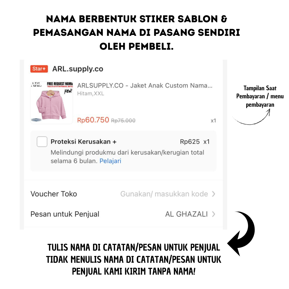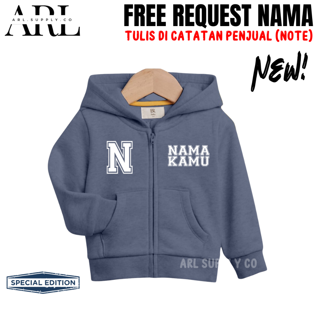 Arlsupply.Co - Jaket Anak Custom Nama+Inisial Terbaru Usia 1-12 Tahun Anak Laki Laki Perempuan Best Seller
