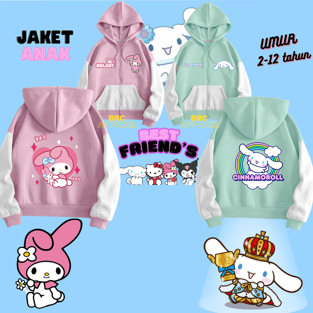 Jaket Risleting Anak Cewe Anak Perempuan Cinnamoroll Dan Melody