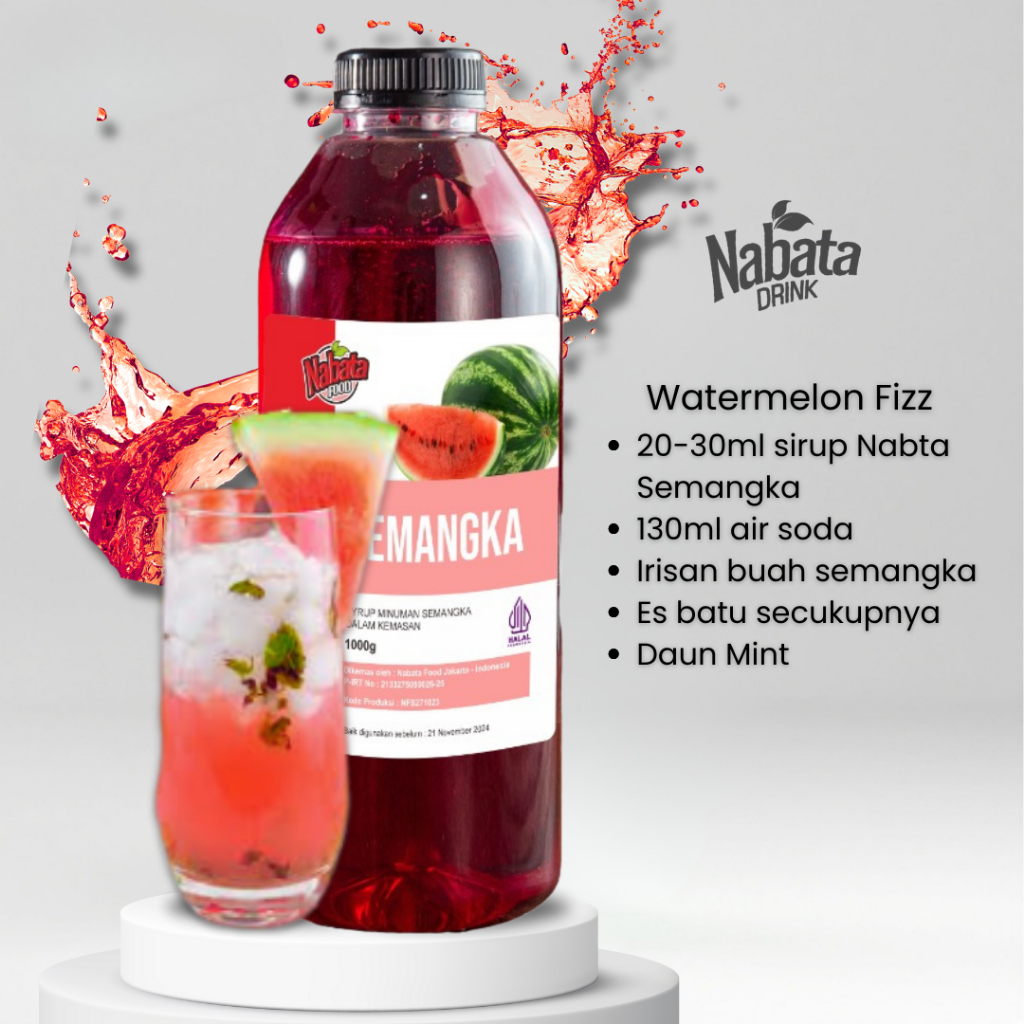 Sirup Semangka India 1 liter Tembikai Malaysia - Syrup Watermelon Nabata Drink 1000 Ml