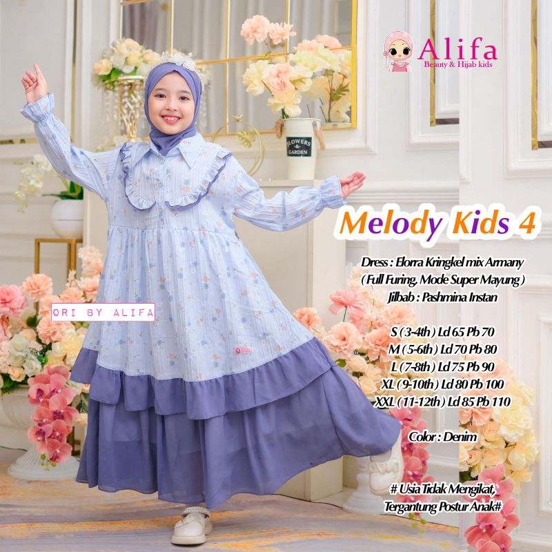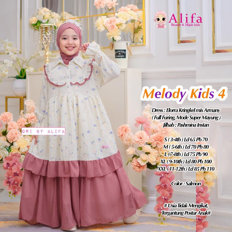 New Produk Melody Gamis Anak Free Hijab Ori Alifa