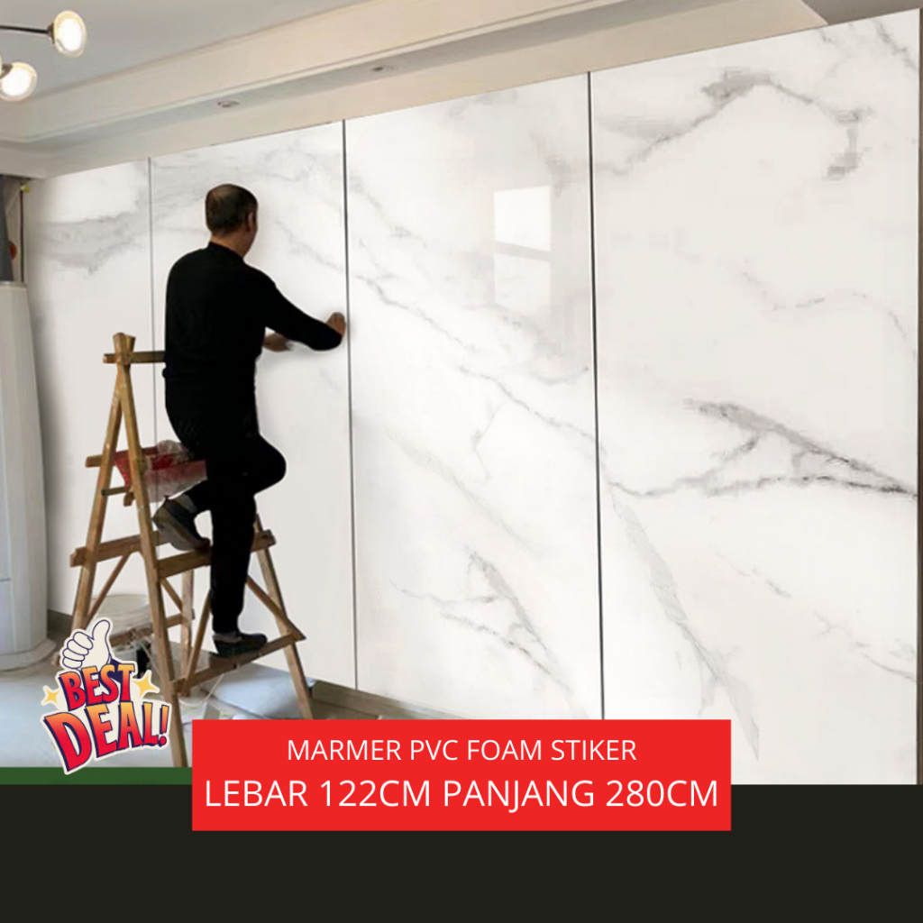 Wallpaper Dinding Vinyl PVC Foam Marble Roll 1.2 x 2.8 Meter Sudah Berperekat Anti Air Mudah Dibersihkan