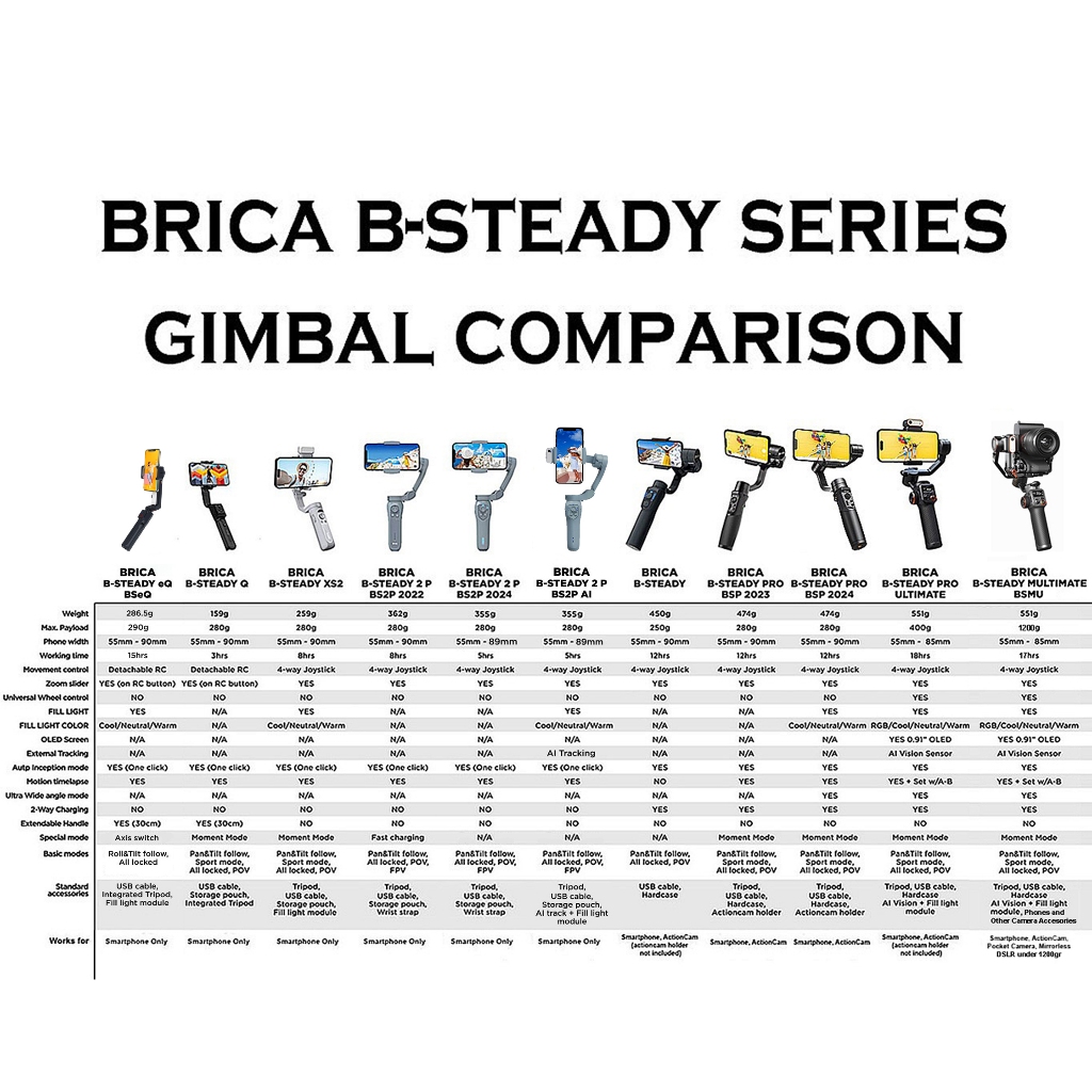 BSteady eQ, BSteady Q Black, BSteady, BSteady 2 Pocket, BSteady2 Pocket Lite, BSteady 2 Pocket AI, BSteady XS 2 + Kaos, BSteady PRO + Kaos, BS ULTIMATE + Kaos