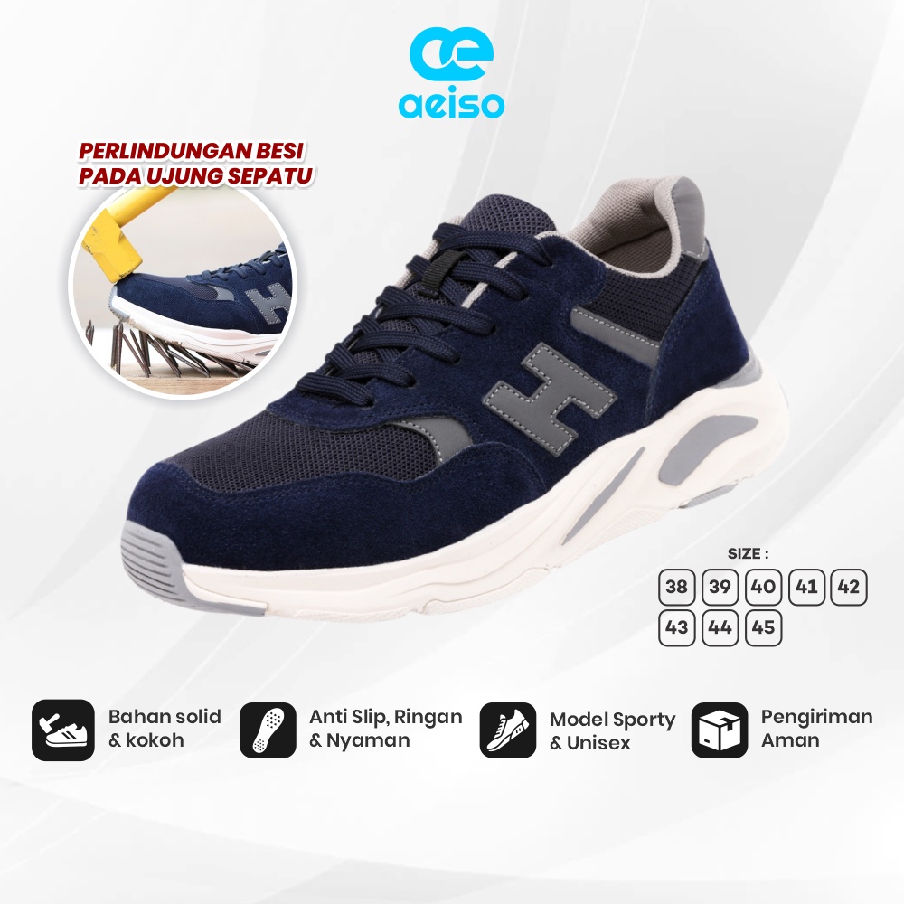 Aeiso - Sepatu Sporty Casual Biru Navy Snekers Boots V7 Sport Ringan Dengan Extra Perlindungan
