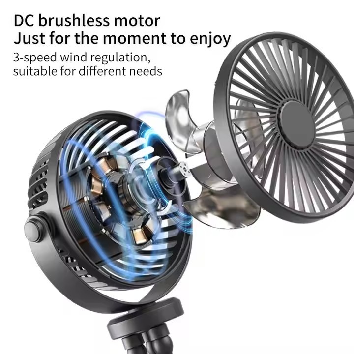 Kipas Bayi Rotasi 720° K11/Kipas Angin Mini USB Rechargeable untuk Kereta Bayi – Kipas Lipat 360° dengan Tripod Fleksibel, Bisa Jepit di Stroller, Portable & Bebas Bising
