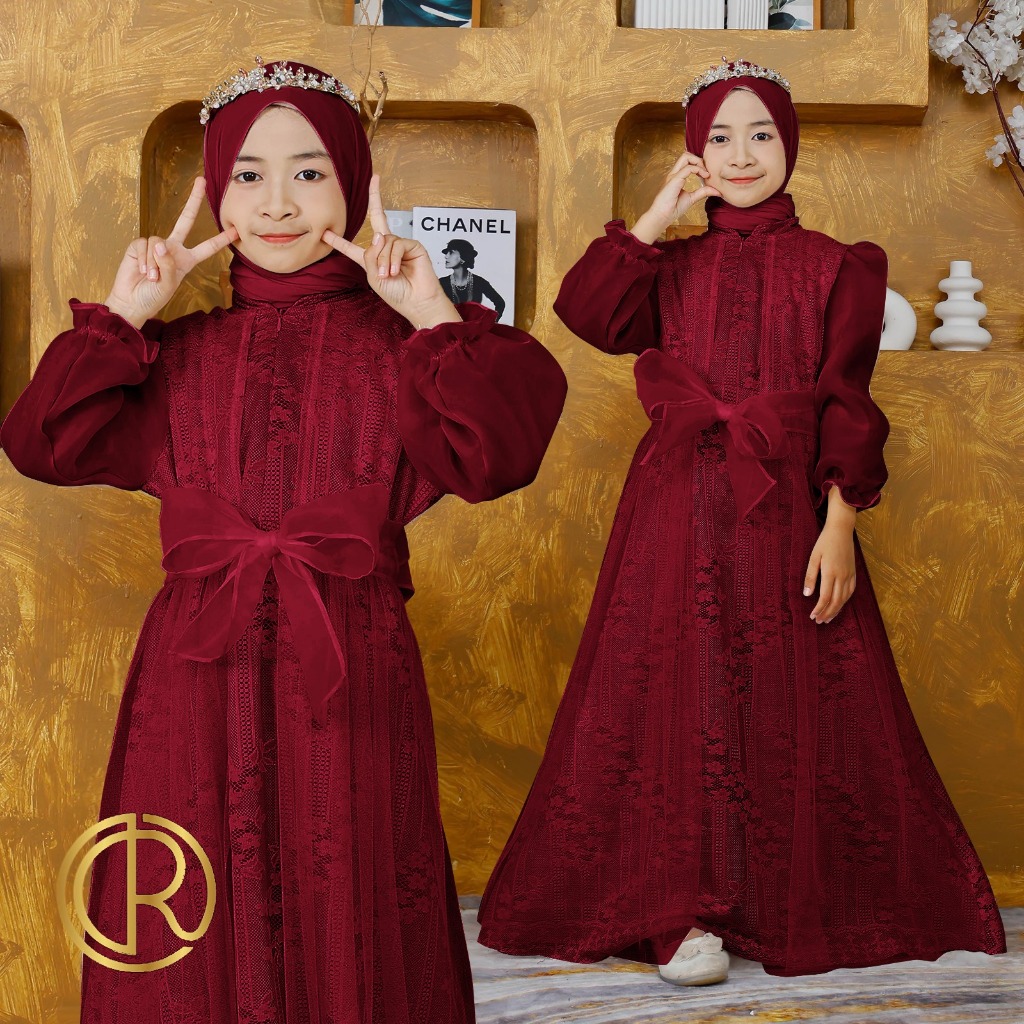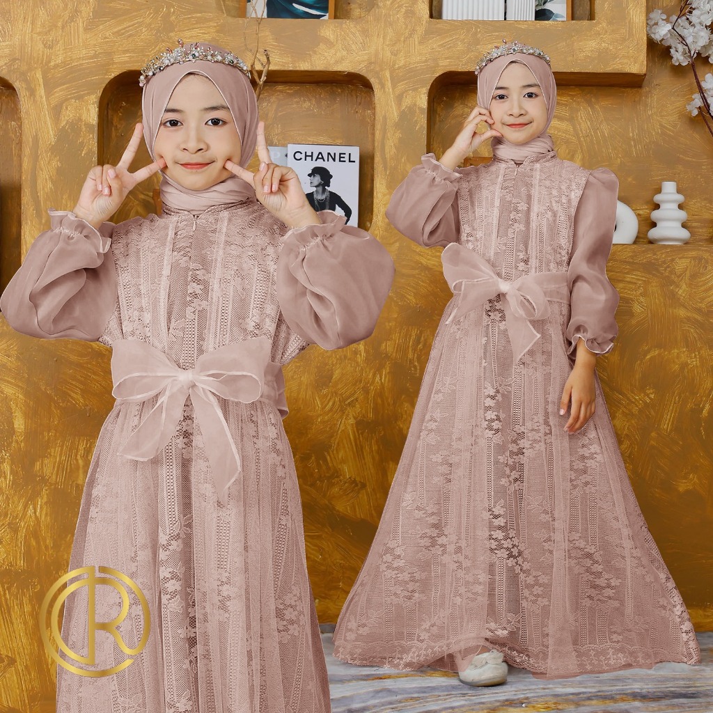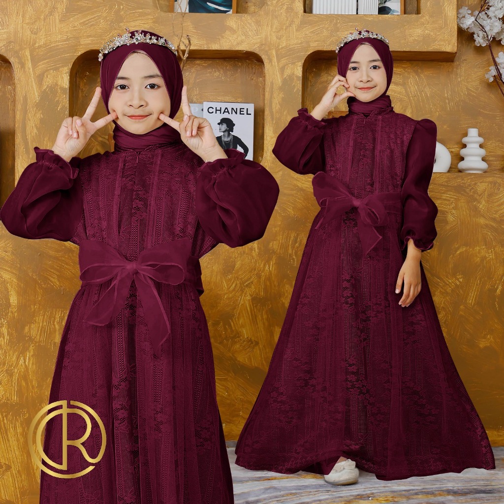 Aurora Boutiq KIDS DAVINA | S M L XL | 15 WARNA | Pakaian Dress Gamis Panjang Anak Kecil 3-4 | 5-7 | 8-10 | 11-13 | Tahu