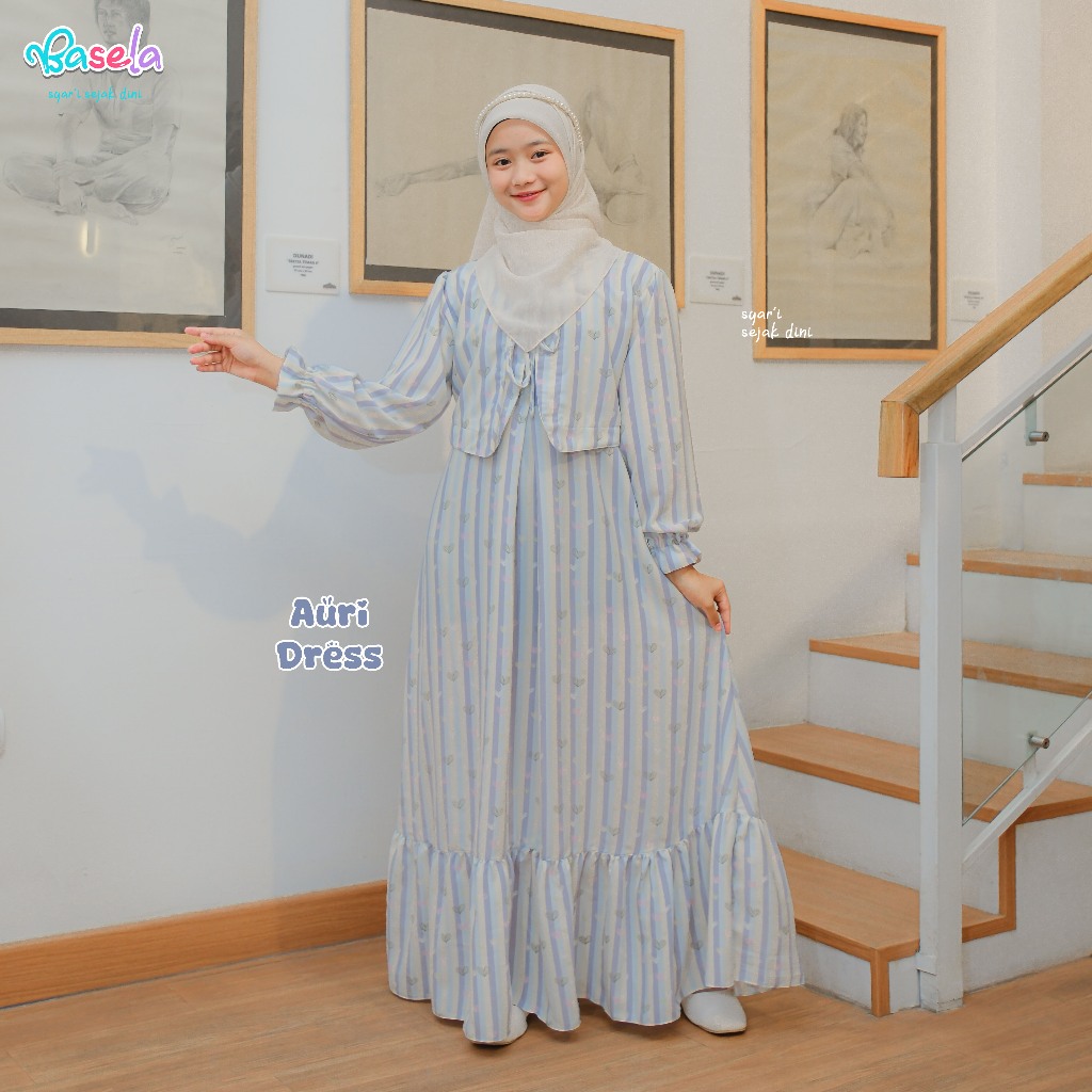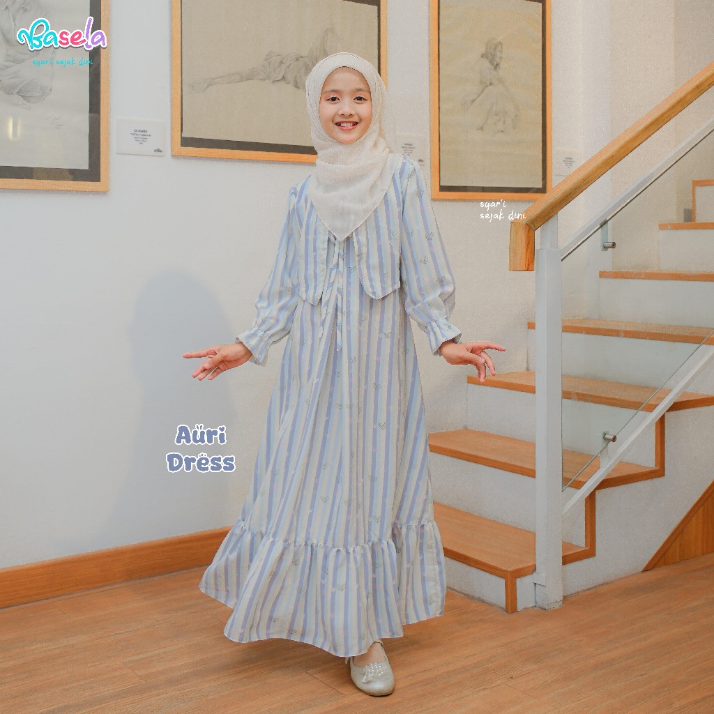 Auri Dress By Basela Official | Gamis Anak Perempuan Spesial Lebaran 2026 | Setelan Dress dan Hijab