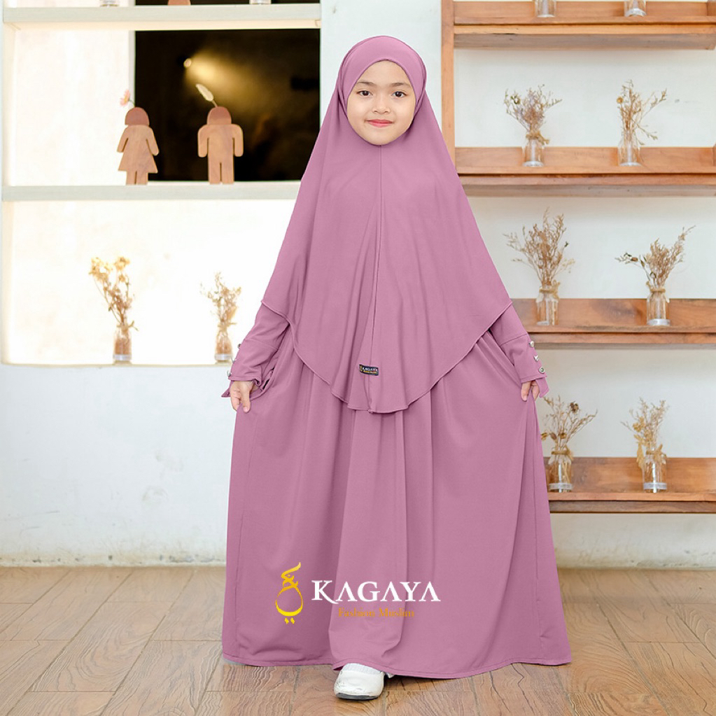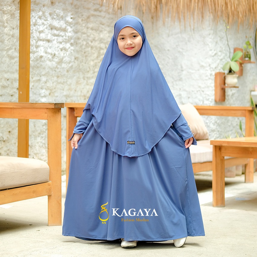 Gamis anak perempuan Yasmin Set 1 sampai 11 tahun One Set dengan Khimar Semi Bandana by KAGAYA
