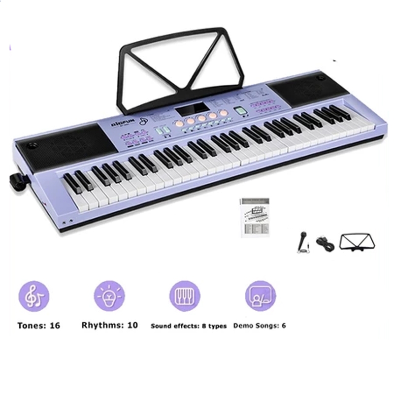 STRUMORA Organ Elektronik Isi Ulang 61 Tuts Piano Musik Anak-anak dengan Mikrofon Keyboard Butiran Kayu Anak-anak