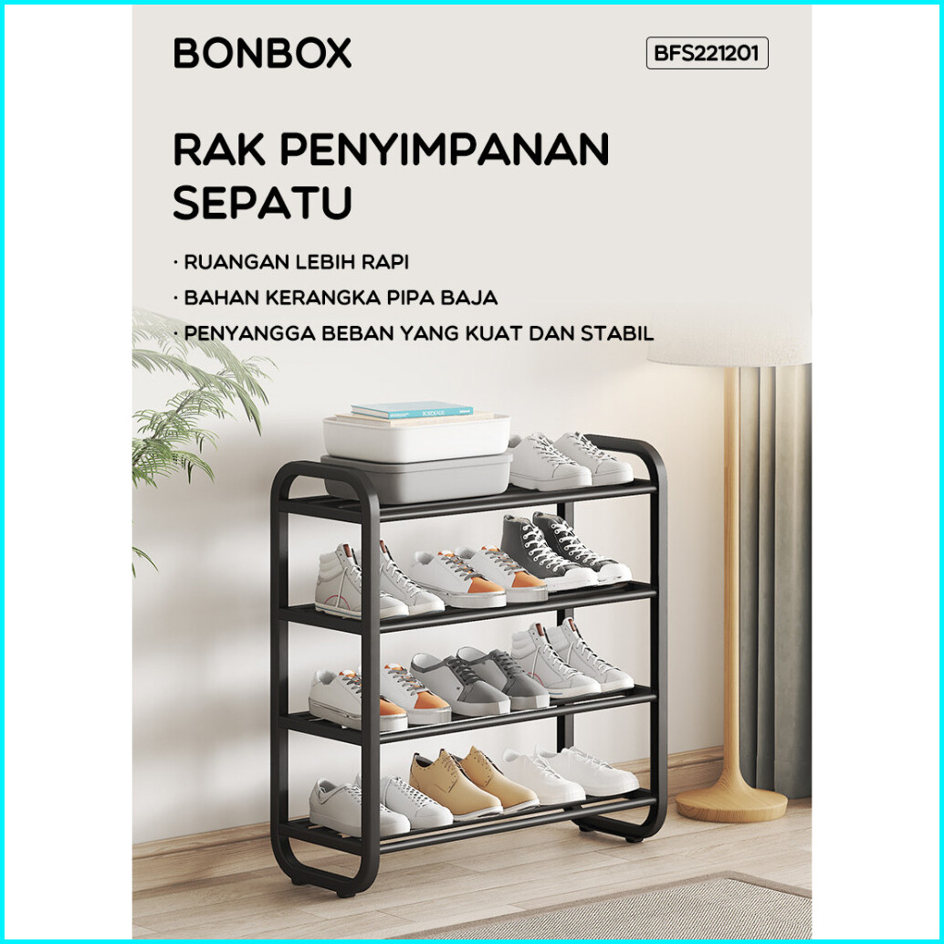 Bonbox Homeliving - Rak Sepatu 4 Layer Floating Shelf Serbaguna Anti Debu Muat 15 Pasang Hemat Ruang Bfs221201
