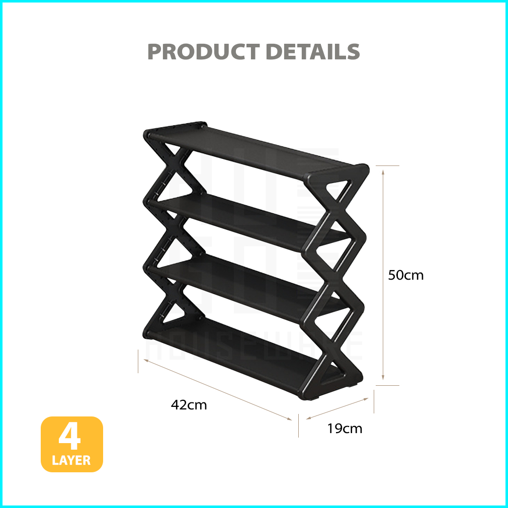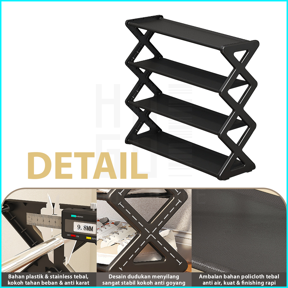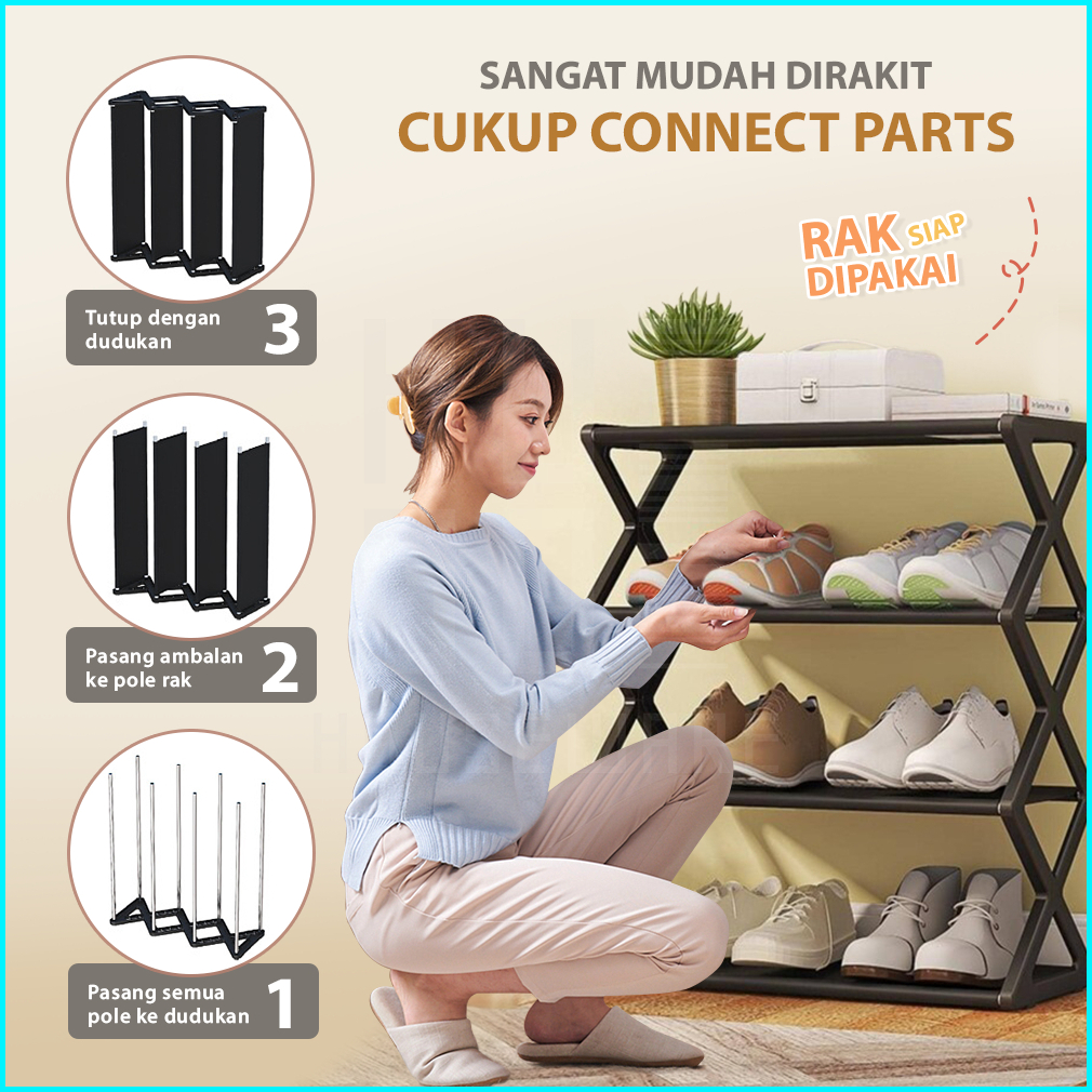 Rak Sepatu Portable 4 Susun Tempat Sepatu Sandal Serbaguna Minimalis Stainless Steel Kokoh Hugo