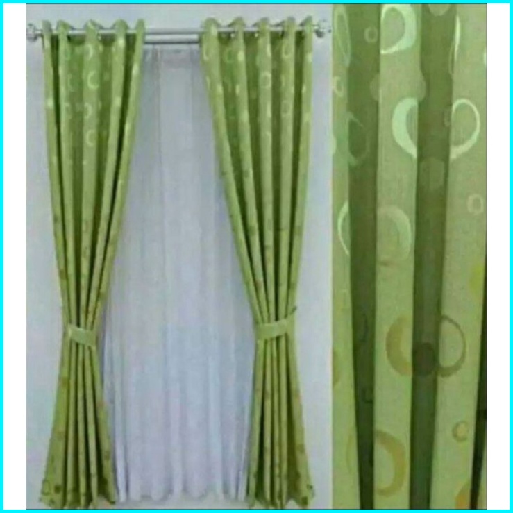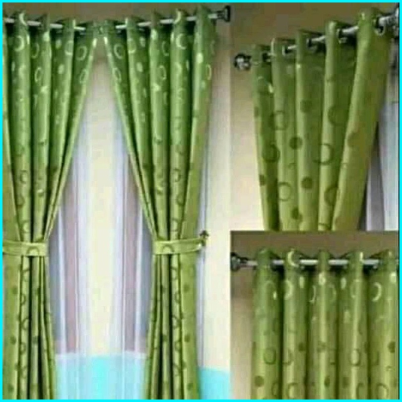 Gorden Polos Emboss Hijau Gorden Jendela Pintu Kamar 10 Lubang Smokring Polkadot Minimalis Terlaris