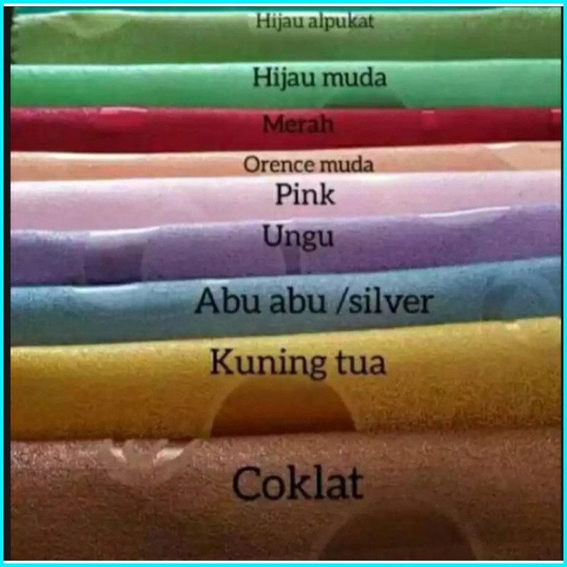 Hijau pokat, COKLAT TUA, pink tua, pink muda, merah, moca, biru, krem, abu tua, abu muda, hijau muda