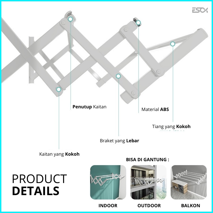 Esok Jemuran Baju Tempel Dinding - Rak Jemuran Pakaian Basah Lipat Rak Jemuran Tembok