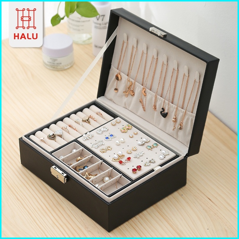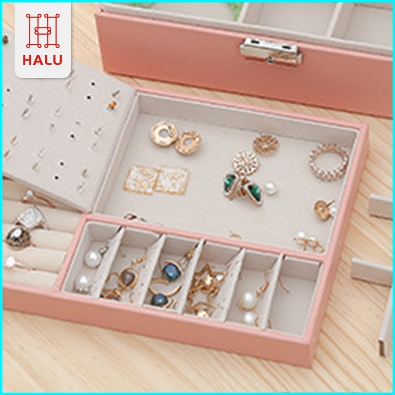 Halu Kotak Kotak Cincin Kalung Tempat Penyimpanan Jewelry Box Case Anting Hdk310
