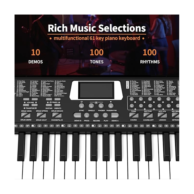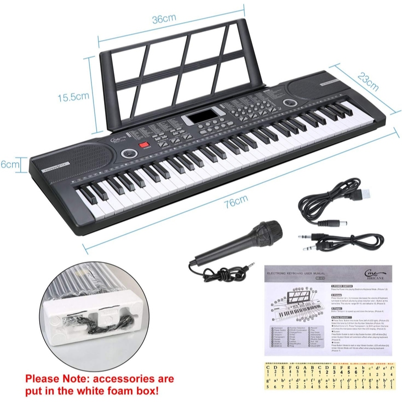 STRUMORA Piano Elektronik Profesional Multifungsi Pengisian Kunci 61 untuk Pemula Dewasa dan Anak-anak