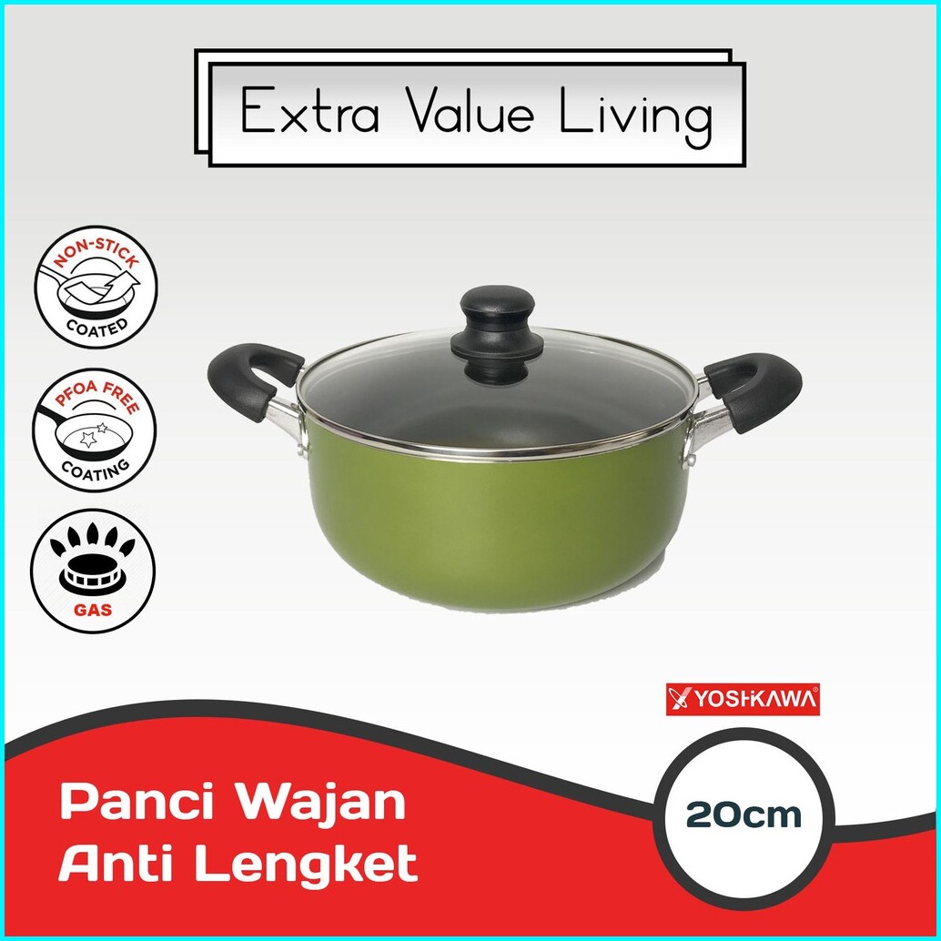 Yoshikawa Panci Wajan Anti Lengket Teplon Tumis Dan Rebus 20 Cm Dutch Oven Evl-cl-11-09