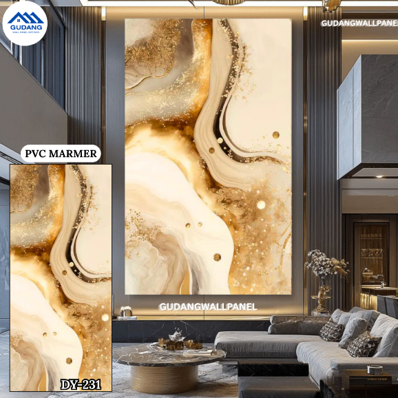 Marmer PVC Panel Dekorasi Dinding Motif Corak Marble Glossy 290cm Dan 244cm Backdrop Mewah Aesthetic