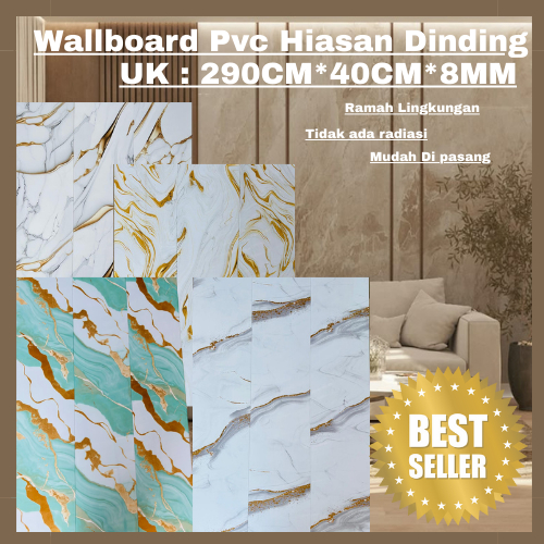 PAKET 1 DUS ISI 8 LEMBAR WALLBOARD PVC UK 2.9 METER LEBAR 40 CM TEBAL 8 MM/ WPC WALLBOARD PRODUK DEKORASI DINDING PREMIU
