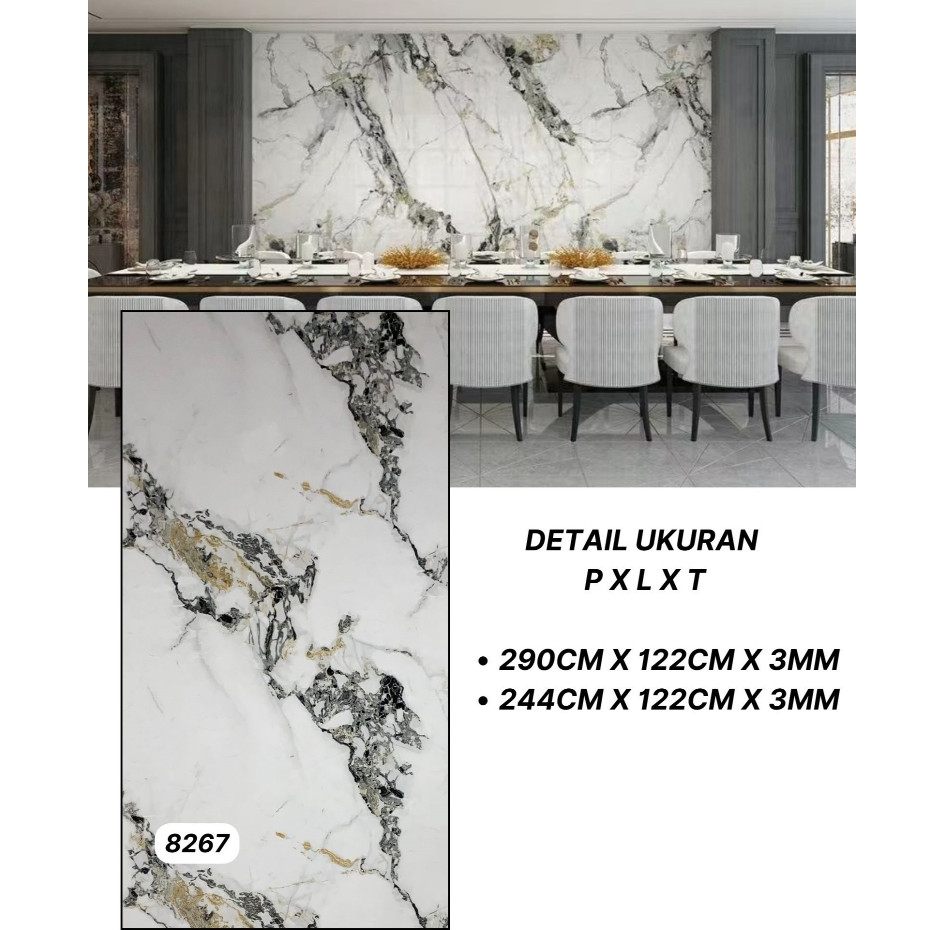Marmer PVC panel Dekorasi Dinding Motif Corak Marble Glossy 290cm dan 244cm Backdrop Mewah Aesthetic