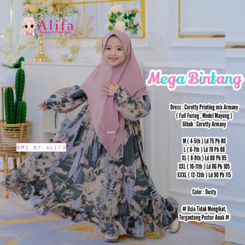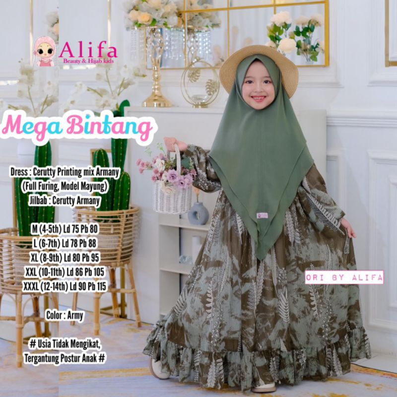 MEGA Bintang Syar'i Kids Gamis Anak Set Hijab Ori ALIFA